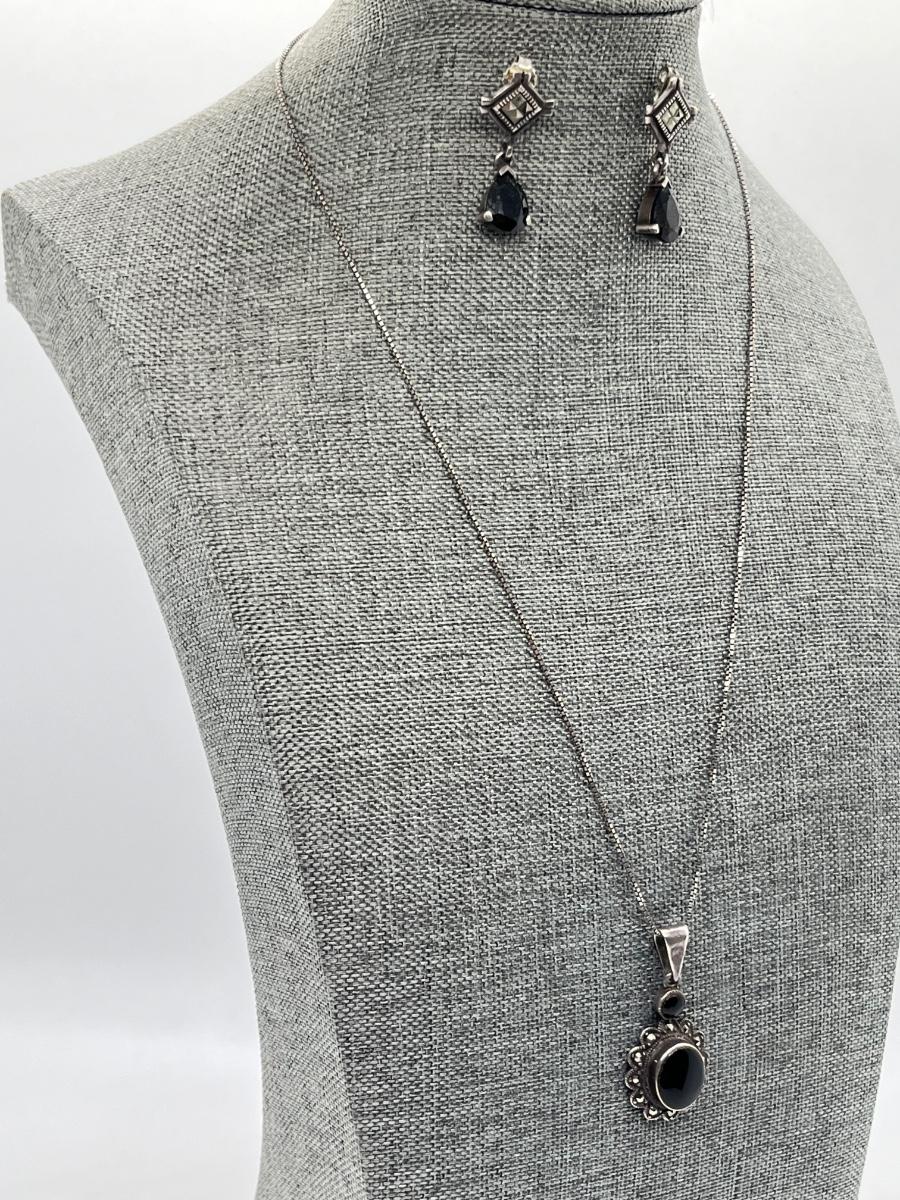 Lot 314J: Sterling Silver Earrings and Pendant on 18" Chain