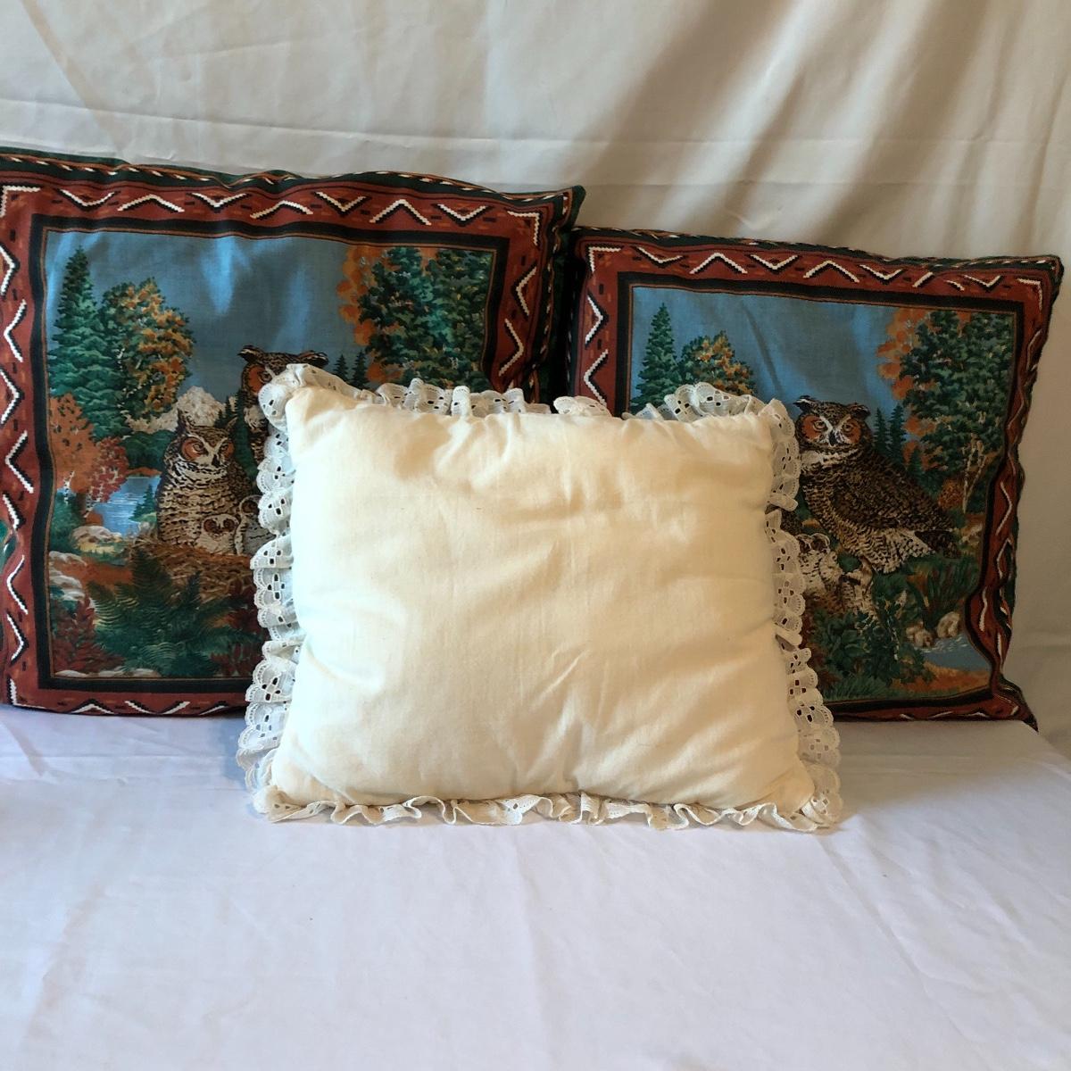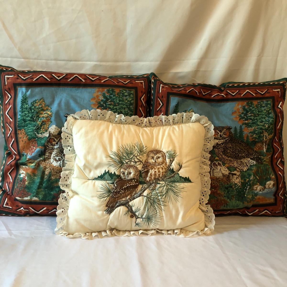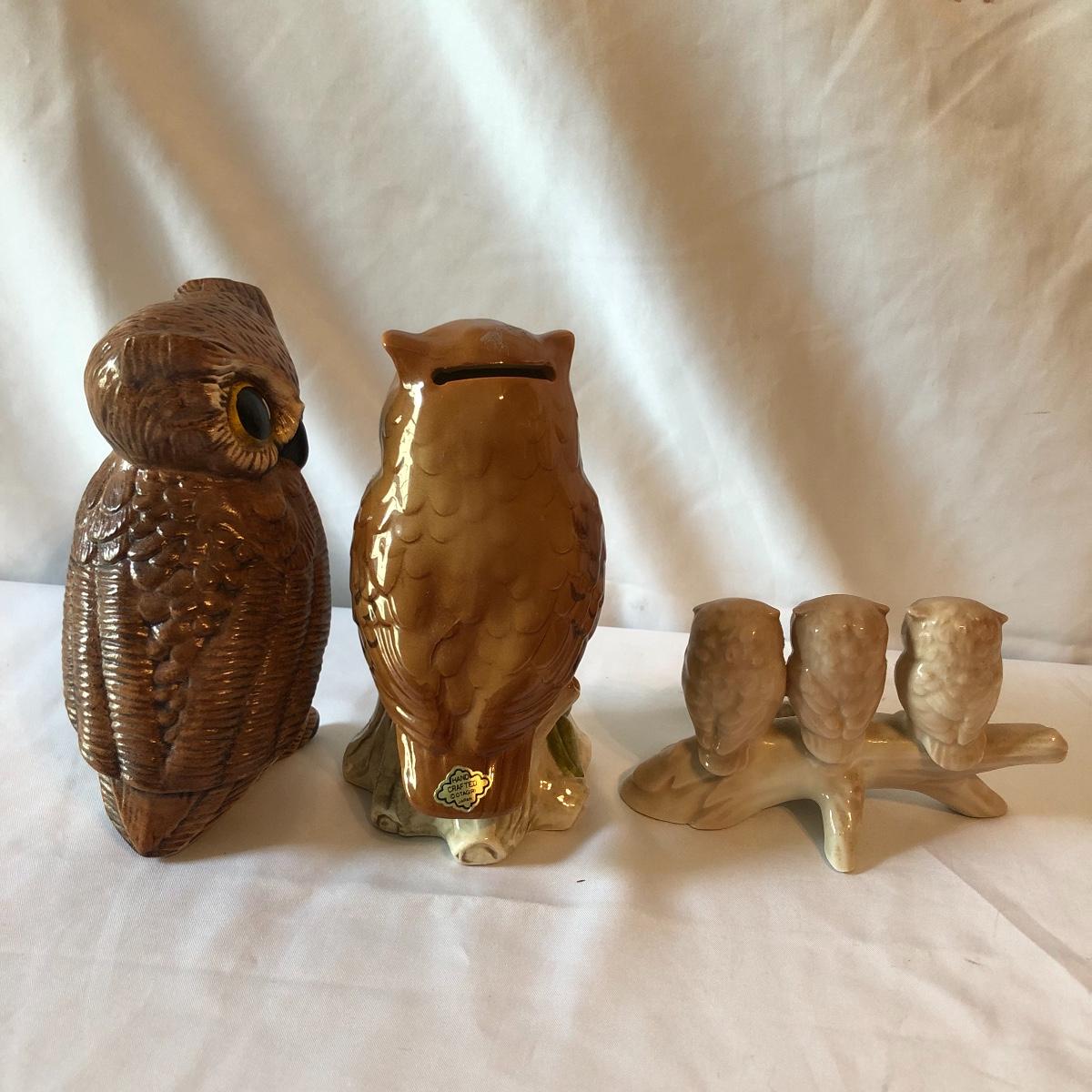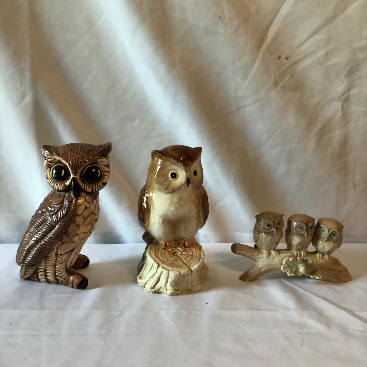 You will give a hoot with this large collection of owl decor. This lot includes two pieces of framed art, wooden box art, wooden and woven owls, wooden bookends, three pillows, wooden basket, three resin and five ceramic figurines, tea light holder, inlaid Courac bowl and more. Largest frame measures 20” x 26”.