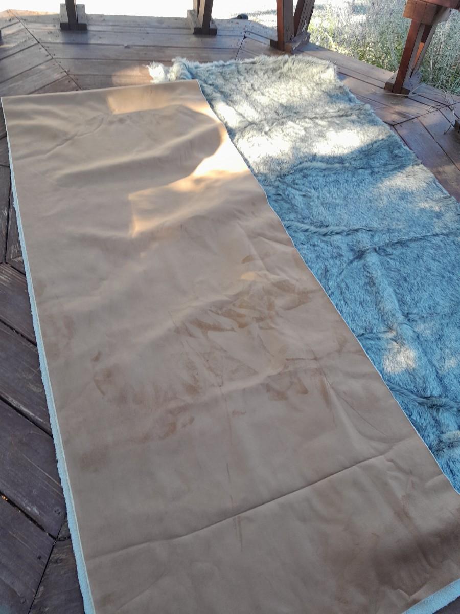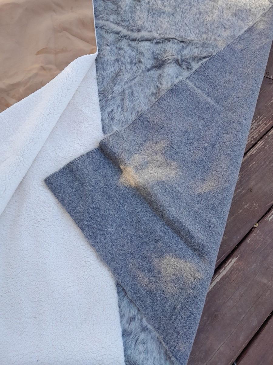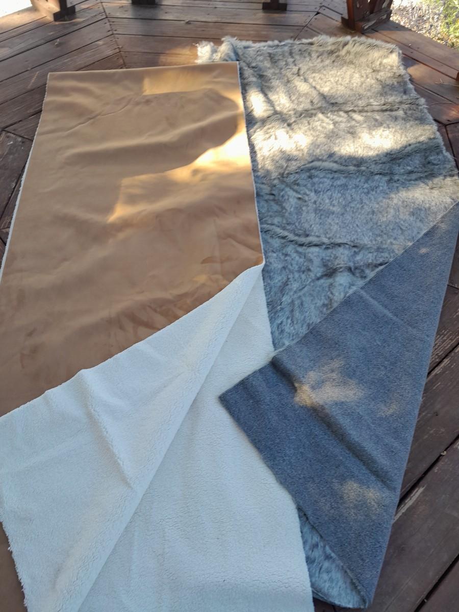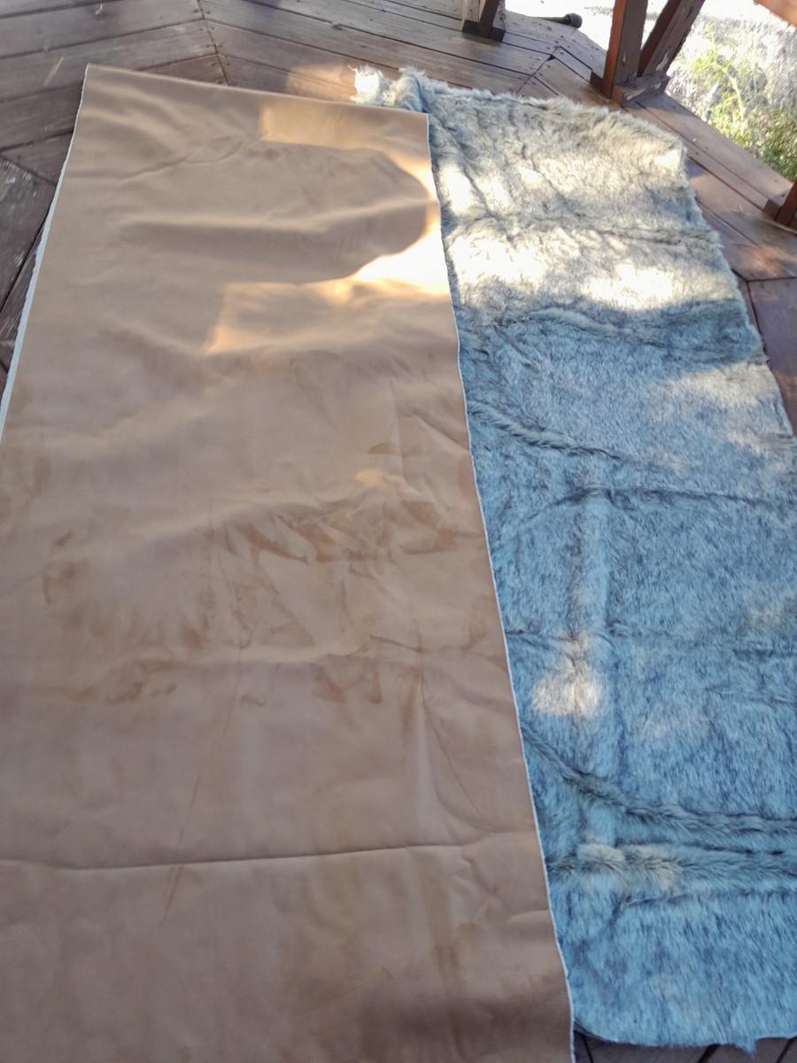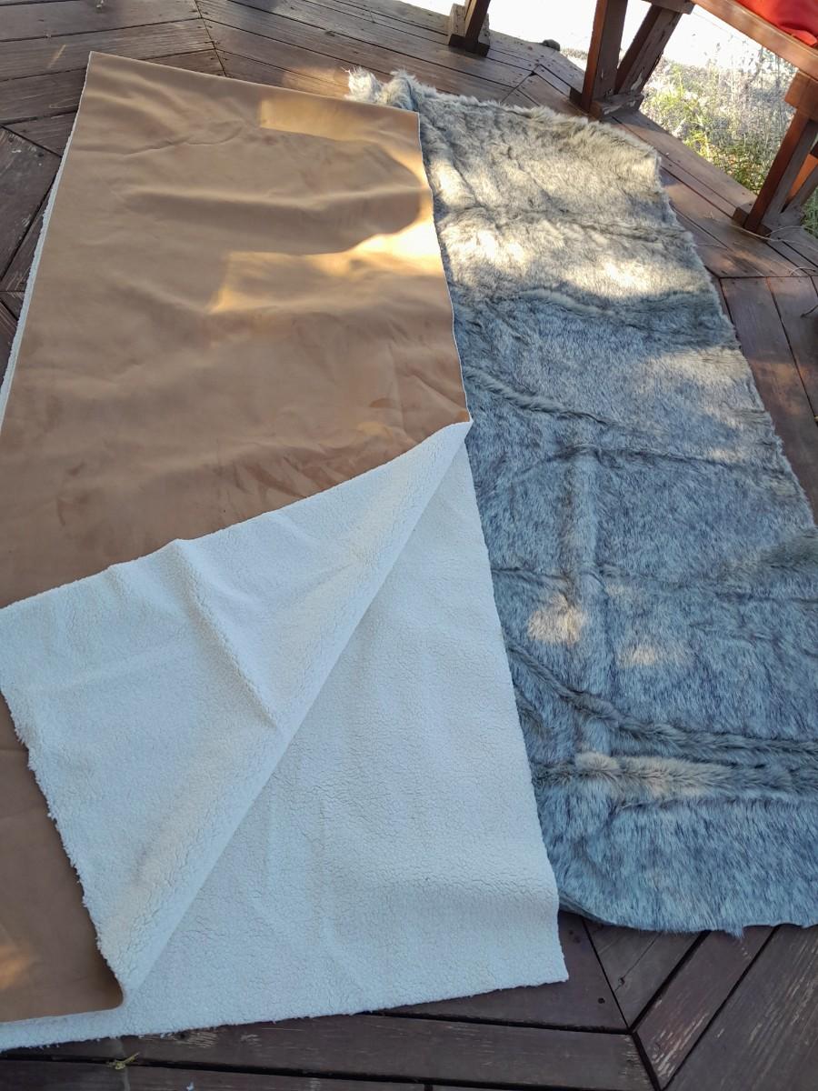 TWO PIECES OF FABRIC, FAUX LEATHER NAD FAUX FUR 150" & 79"