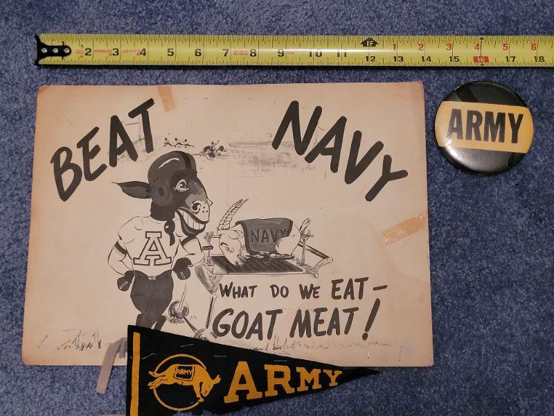 Lot #315 Vintage ARMY "Beat NAVY" Spirit Poster w/ Button