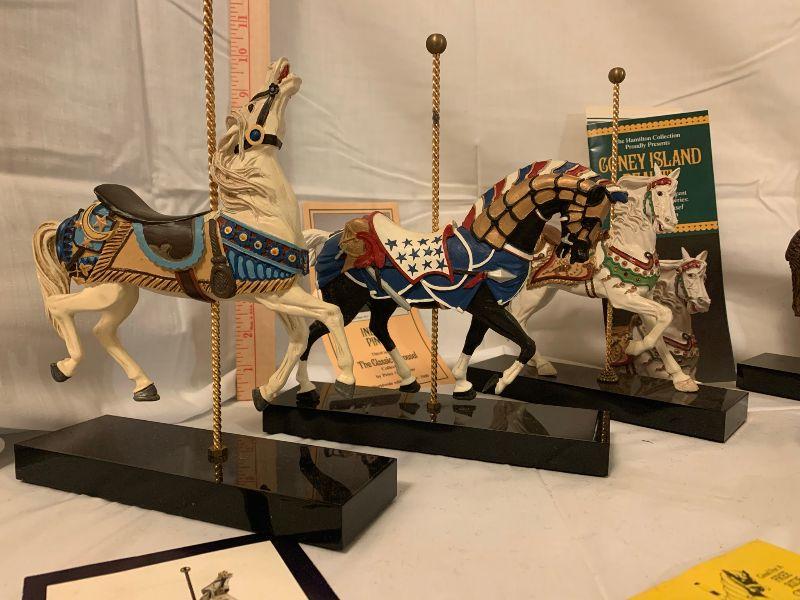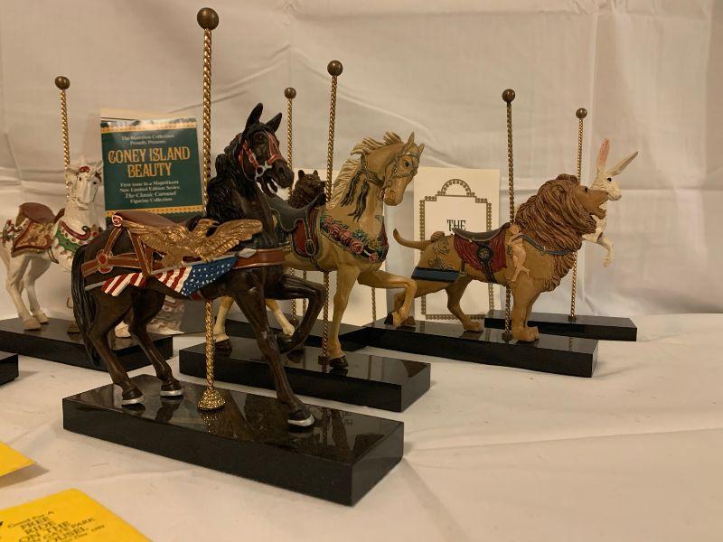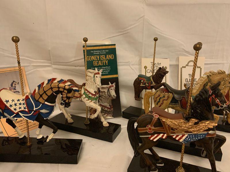 Carousel lot x8. 1 broken leg, 3 repaired, Hamilton collection coney island beauty, and more