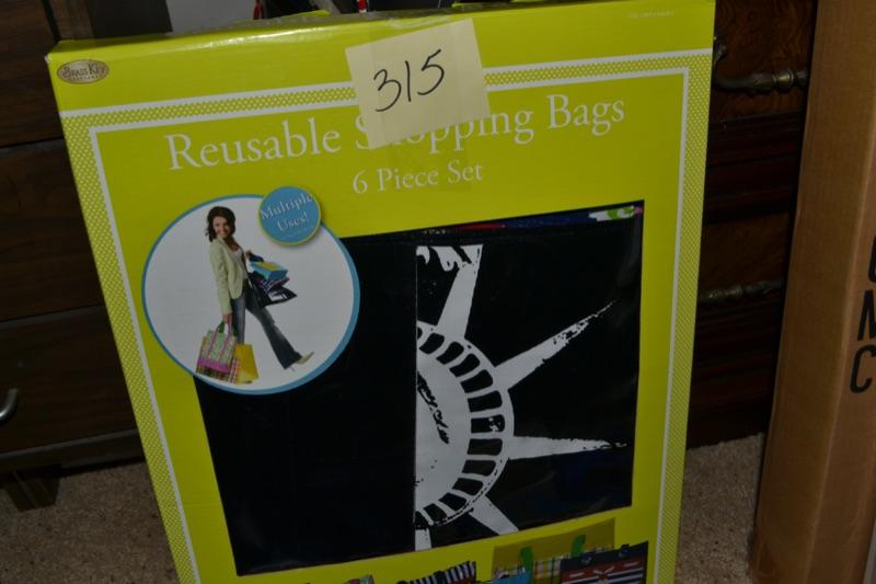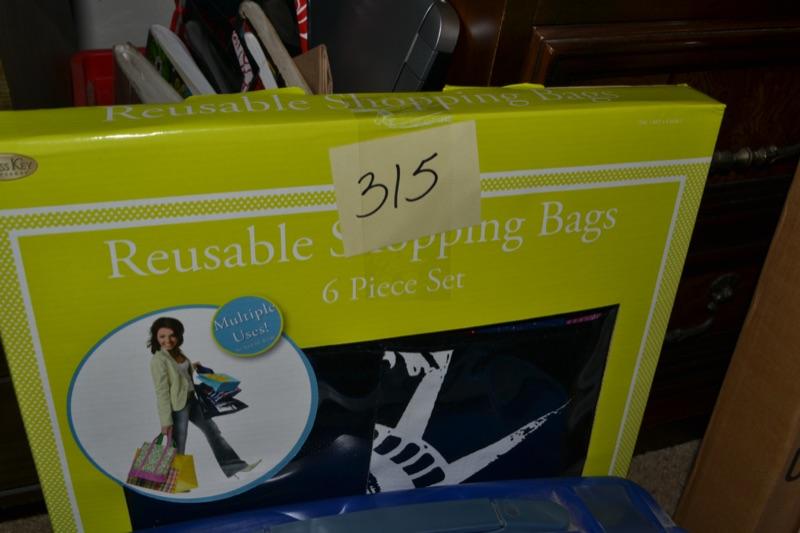 LOT 315. 6 PIECE SET REUSABLE SHOPPING BAGS AND SUZE ORMAN KIT