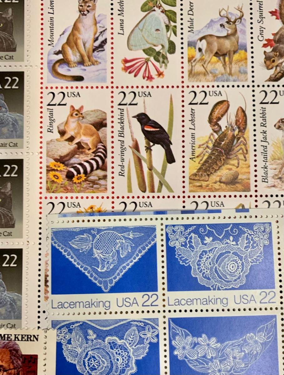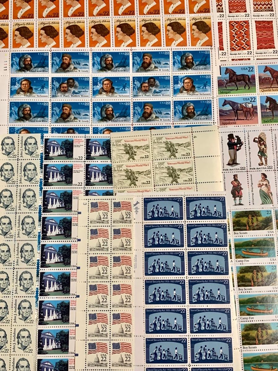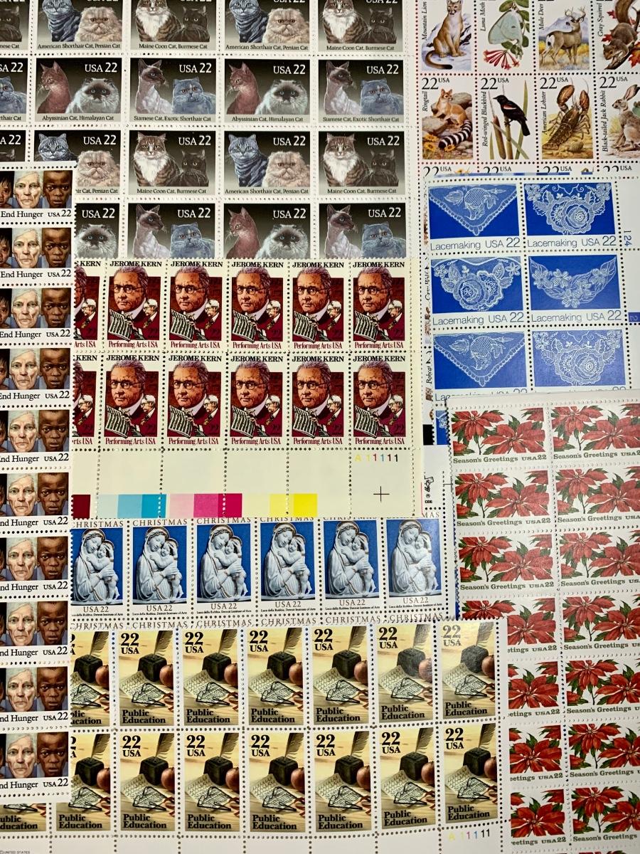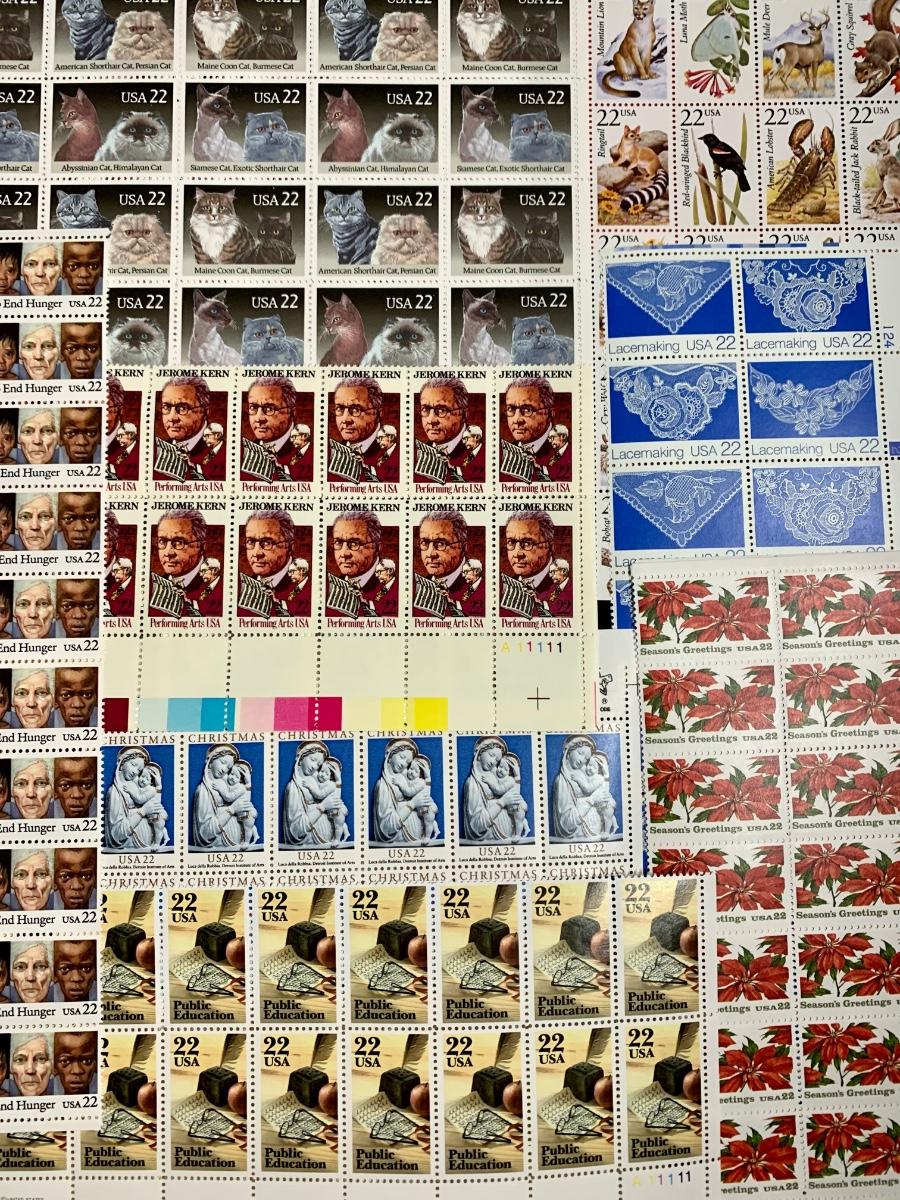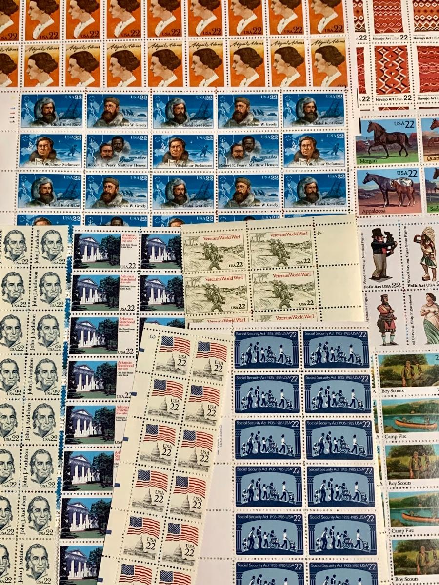 Stamp collection with a approximate Retail Value of $140. There are approximately 656 stamps ands value of .22 cents. The retail pertains to the year these stamps were purchased, but because many of these sheets and/or loose stamps are no longer for sale and hard to find, they sell well individually online and for more than retail. Please see all pictures as they are the best representation of the items. The pictures show condition, measurements if taken, and what is included in the lot. Due to the large amount that we photograph and the time frame, we are not always able to take measurements. All items unless noted, are pre-owned and have been used. If you purchased furniture, you must bring help. We do not allow one person to carry large furniture out on their own. Bring help, tools and a truck for the safety of our client’s homes, and your personal safety. Company policy. Thank you.