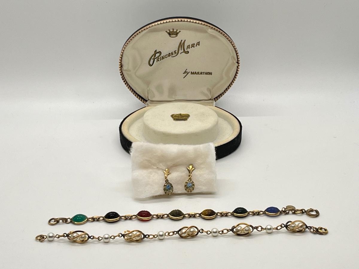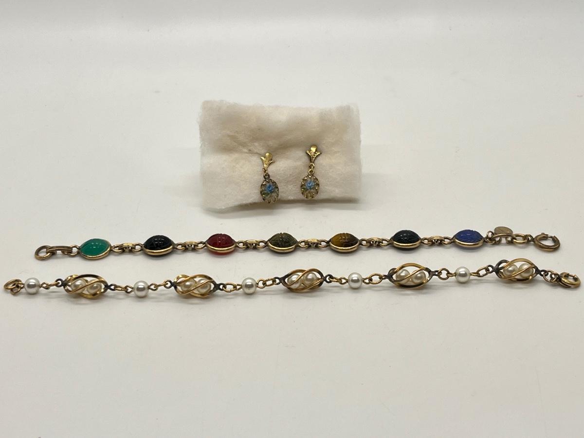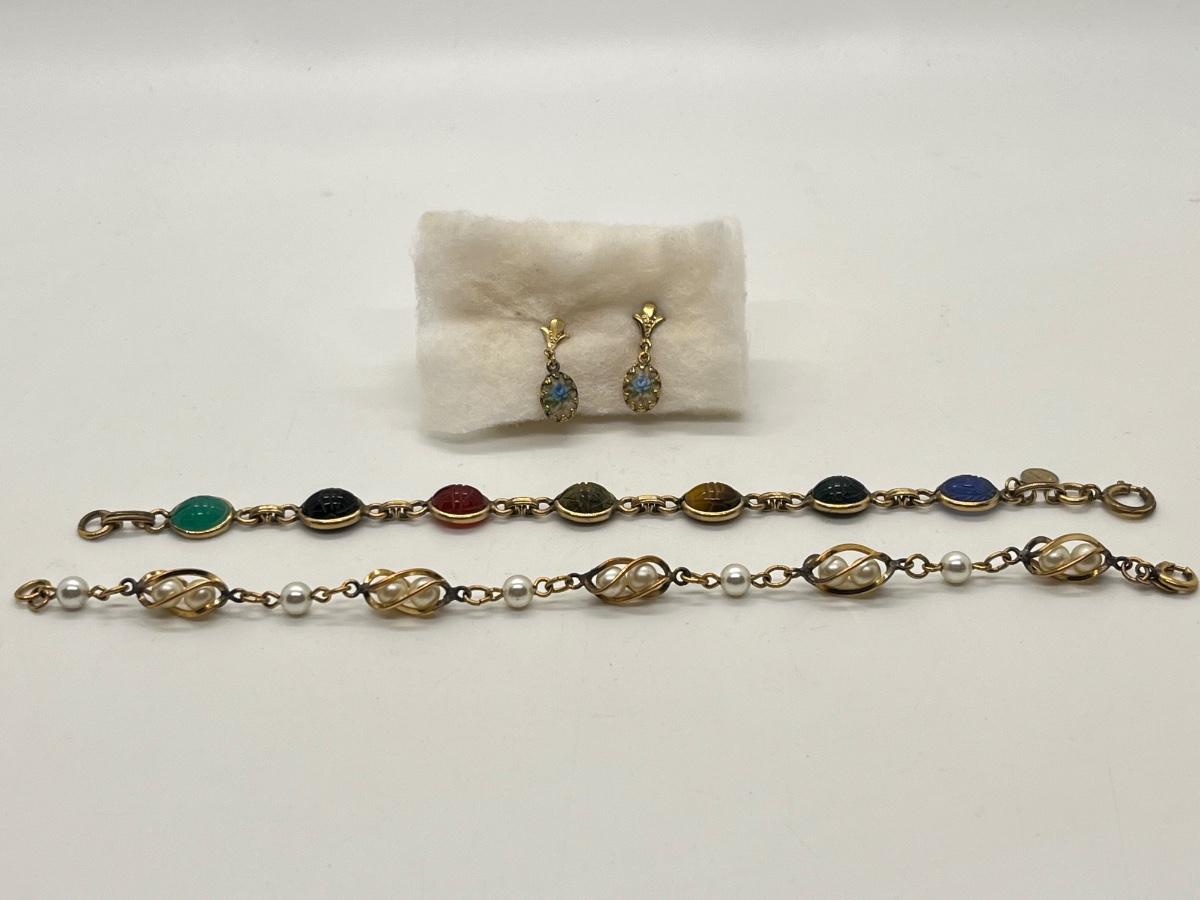 Lot 315J: Two Vintage Goldfill Bracelets and Pierced Earrings