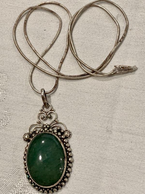 LOT 315  CLOUDY GREEN OVAL PENDANT STERLING SILVER CHAIN