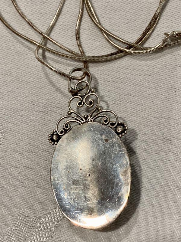 Oval pendant in sterling silver setting with a 24" sterling silver chain.