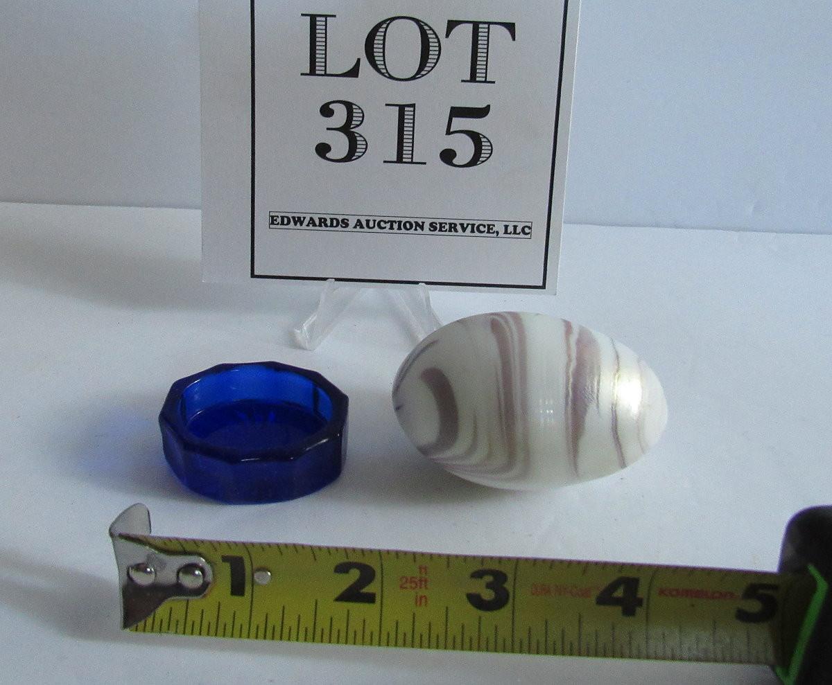 Lot 315:  Gibson Glass Egg and Blue Open Salt Dip