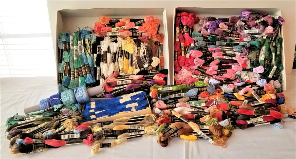 You get all you see here...and boy...is it a LOT! My client was a crafter and it really shows. All the colors of the rainbow here of DMC embroidery floss - dozens and dozens of skeins new and unused. Anyone want?