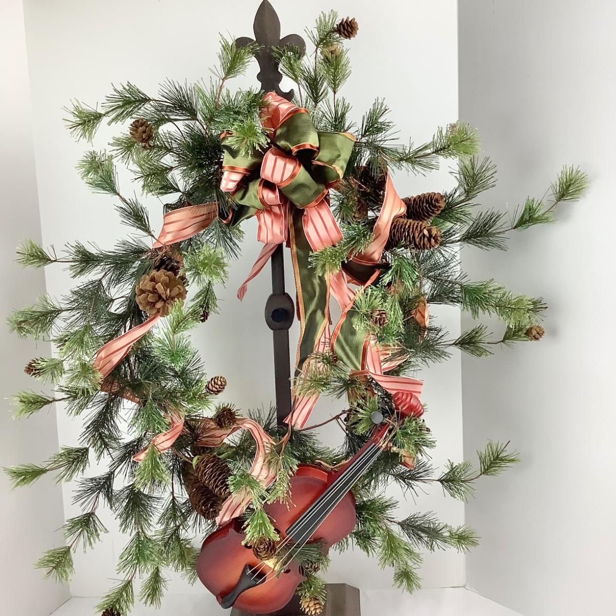 Lot 315. Old World Wreath with Violin & Ribbon made in France