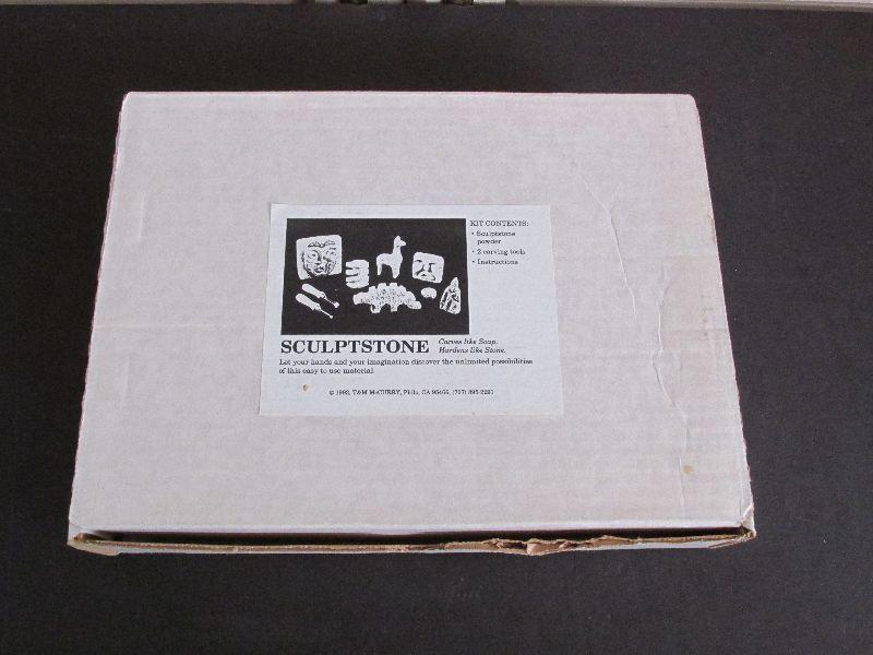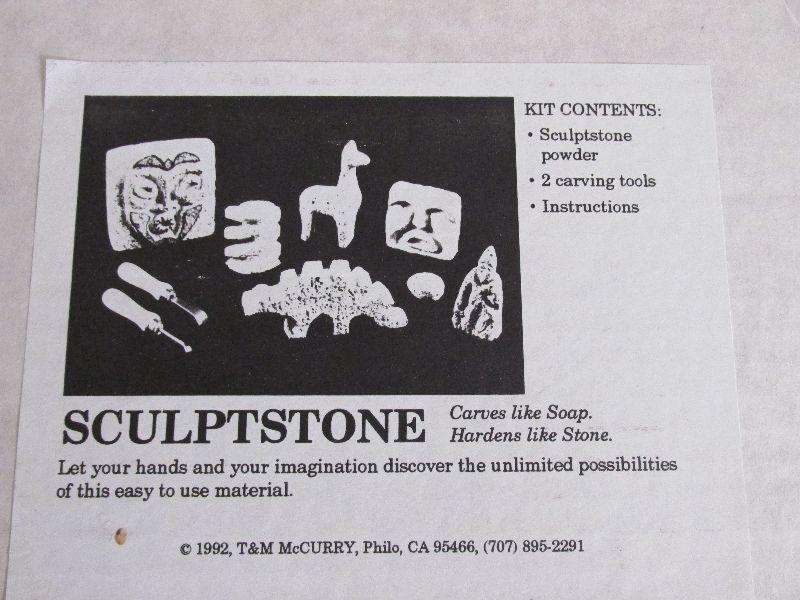 1992 T & M McMurray Sculptstone Kit. Kit contains : Sculptstone Powder, Two carving tools, and instructions. Old but never been used.