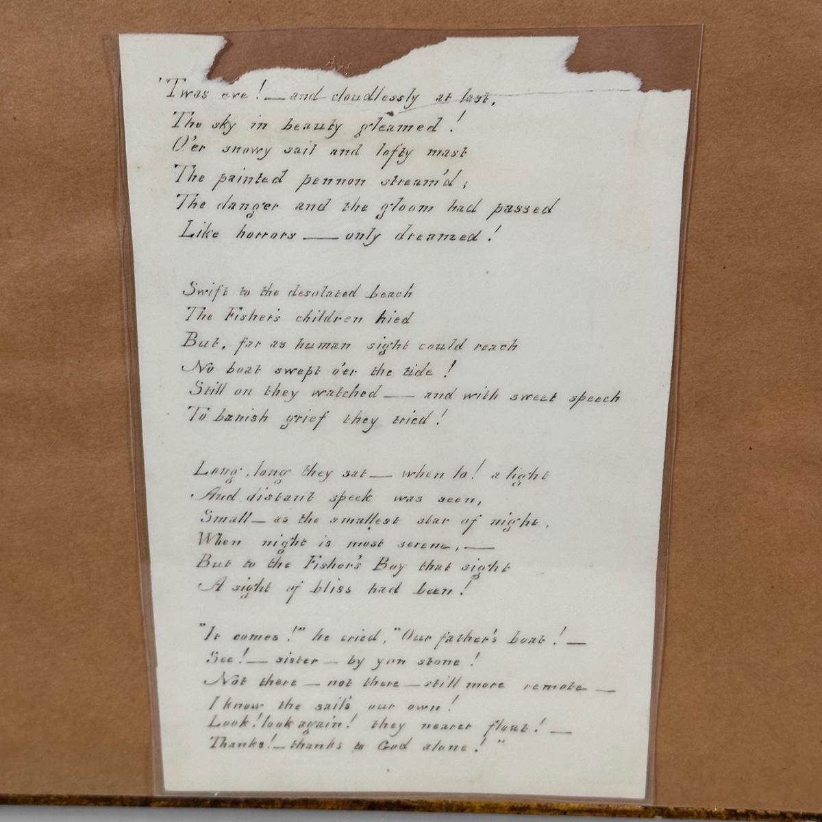 LOT 315Y: Framed antique Print with poem on the back.