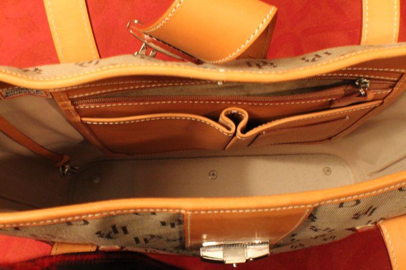 LOT #316: Dooney & Burkeâ„¢ Monogram Brown Leather Accent Purse
