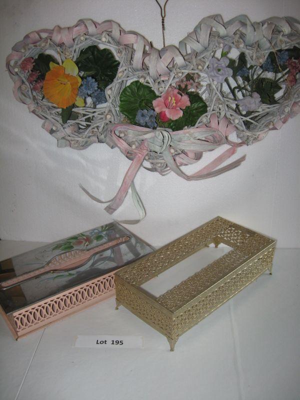 Two Vintage tin/metal Kleenex Box covers and Wicker Wall Decor.