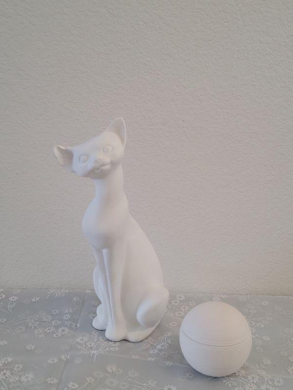 Lot 316: Vintage Non-Glazed or Painted Ceramic Cat and Trinket Box
