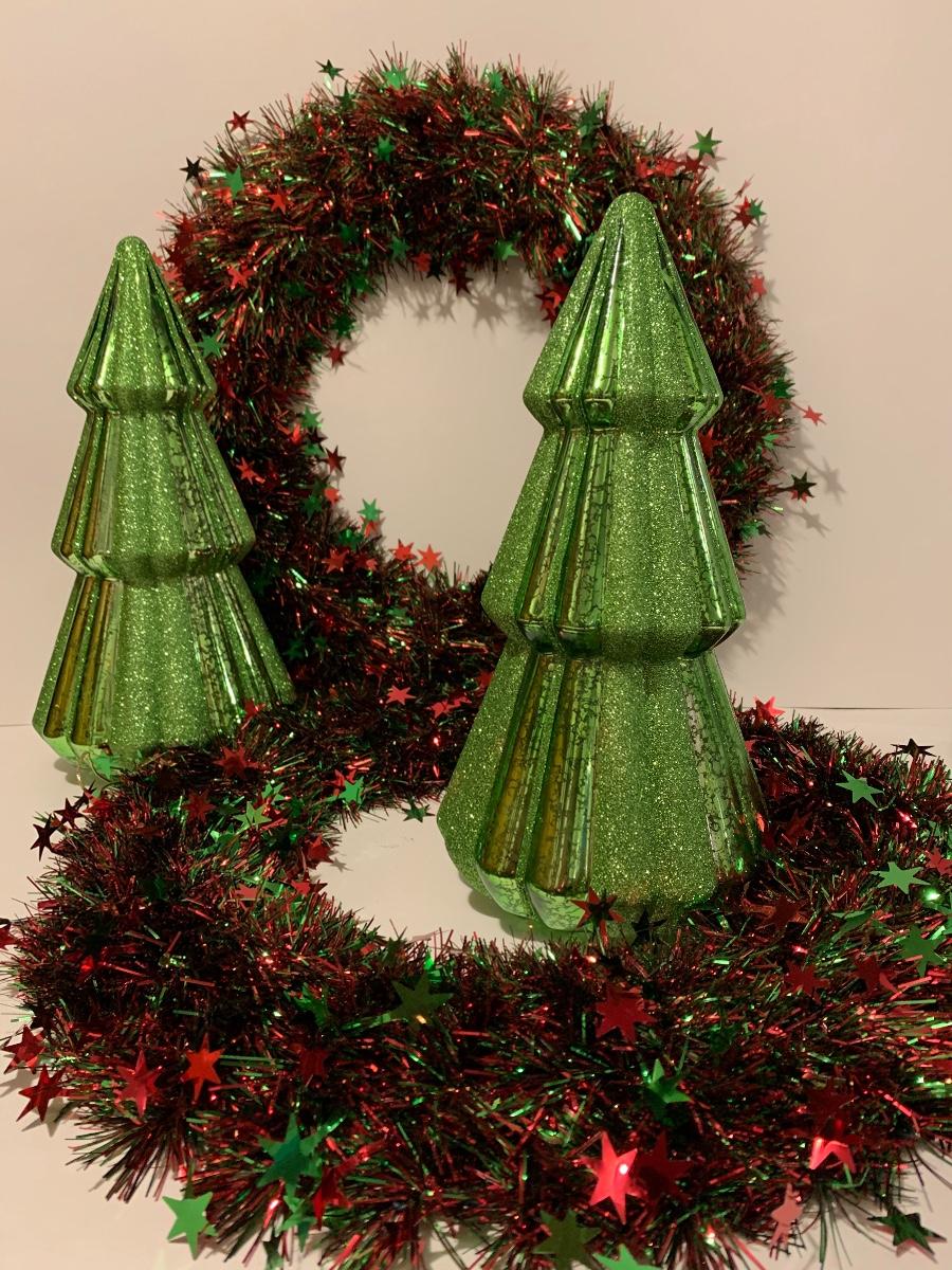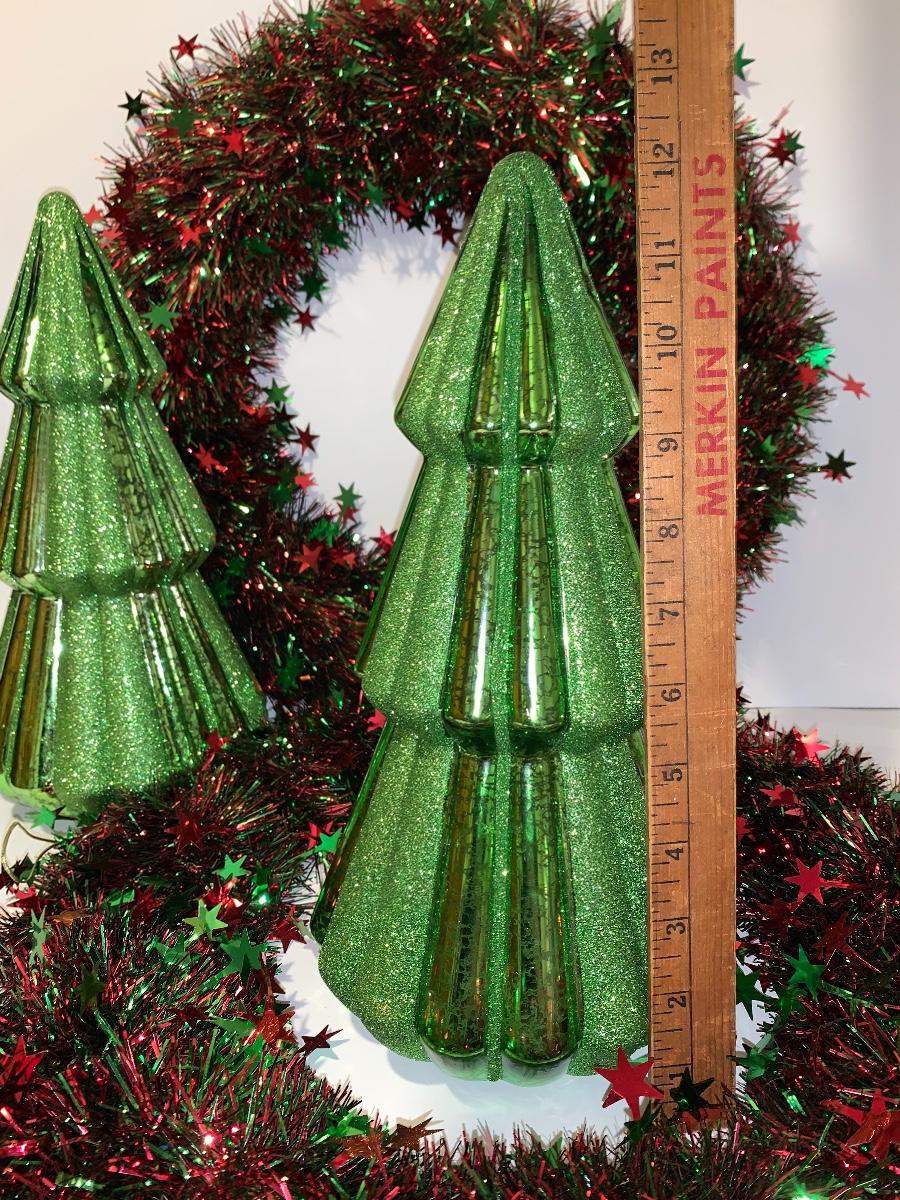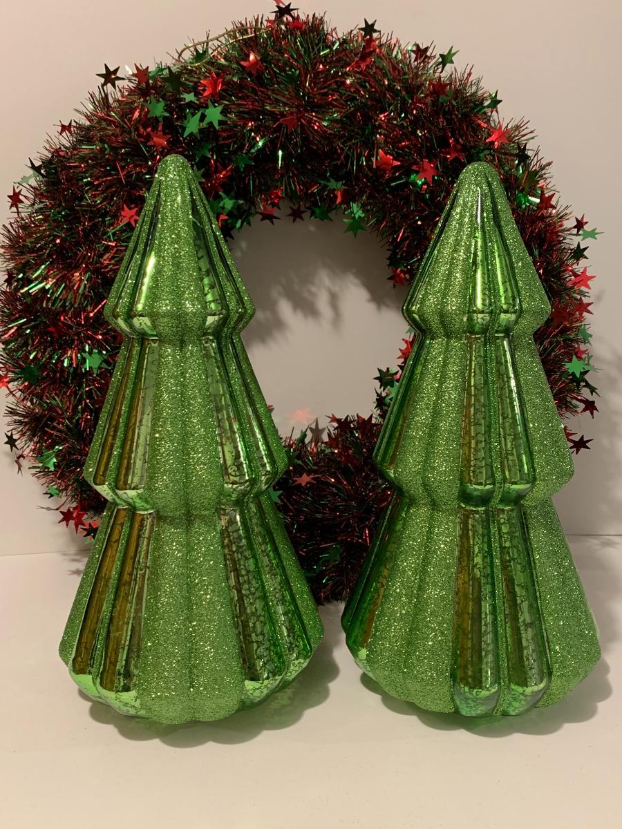 Beautiful newer pair of untested battery operated mercury glass Christmas trees ( with their original box). .