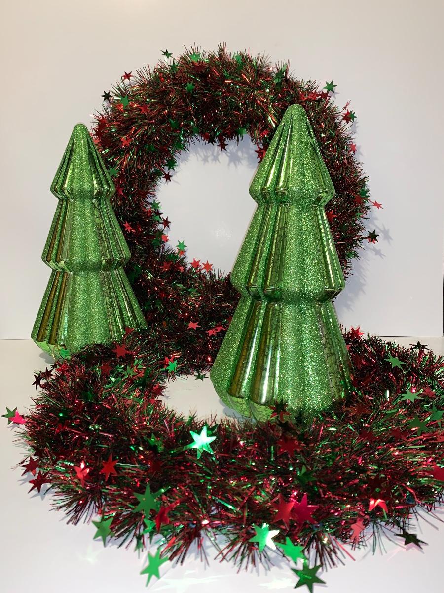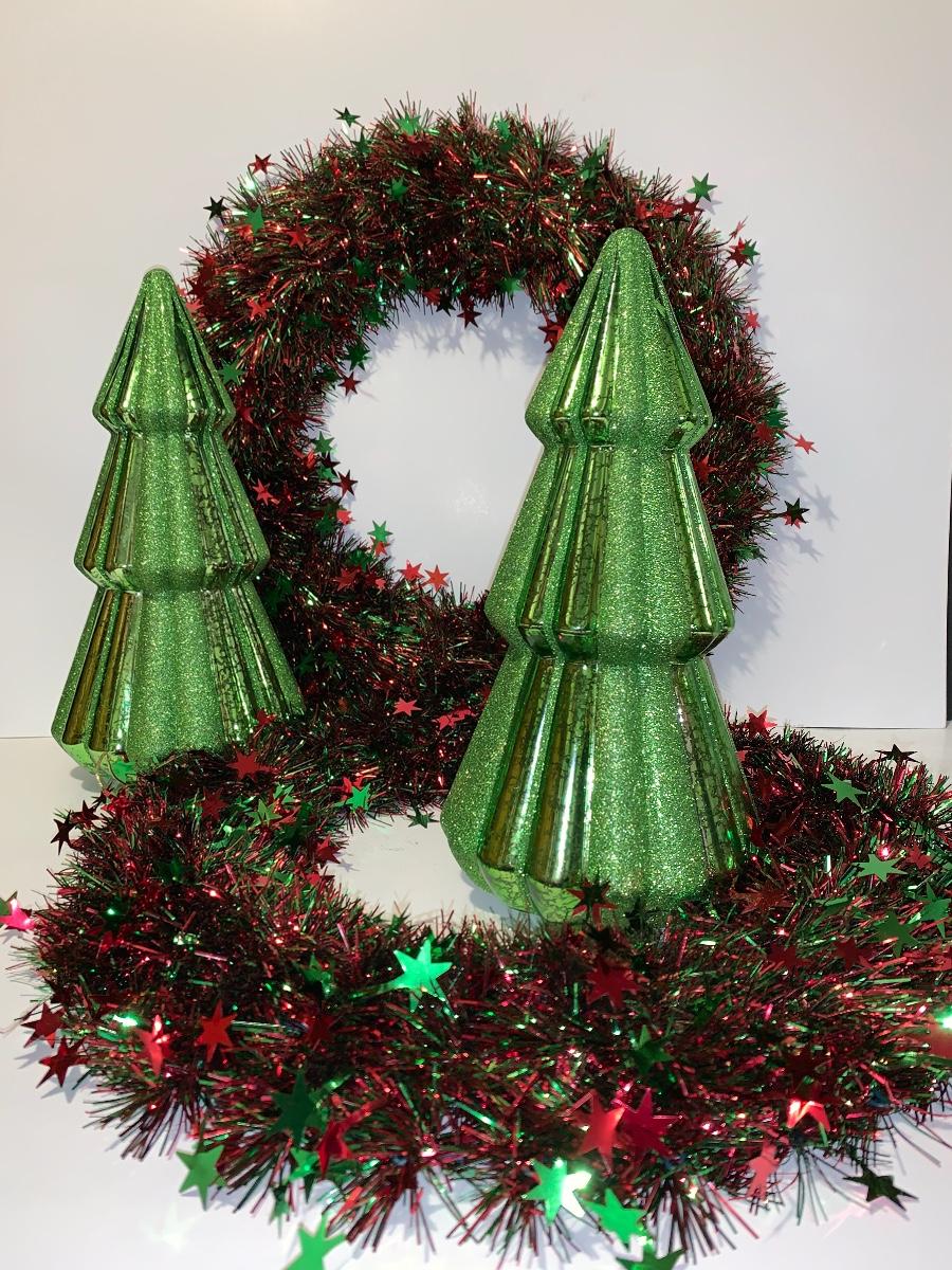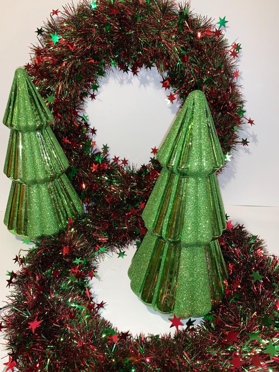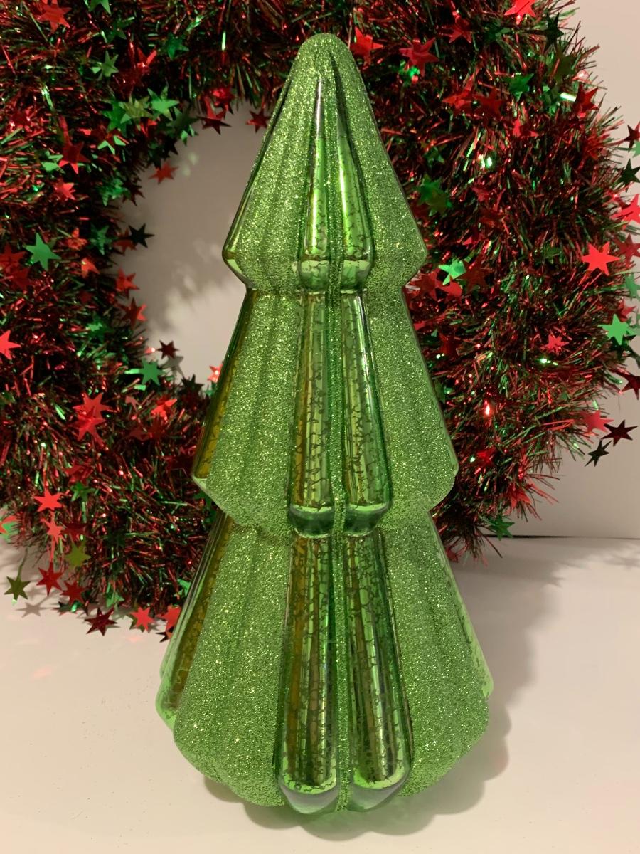 Beautiful newer pair of untested battery operated mercury glass Christmas trees ( with their original box). .