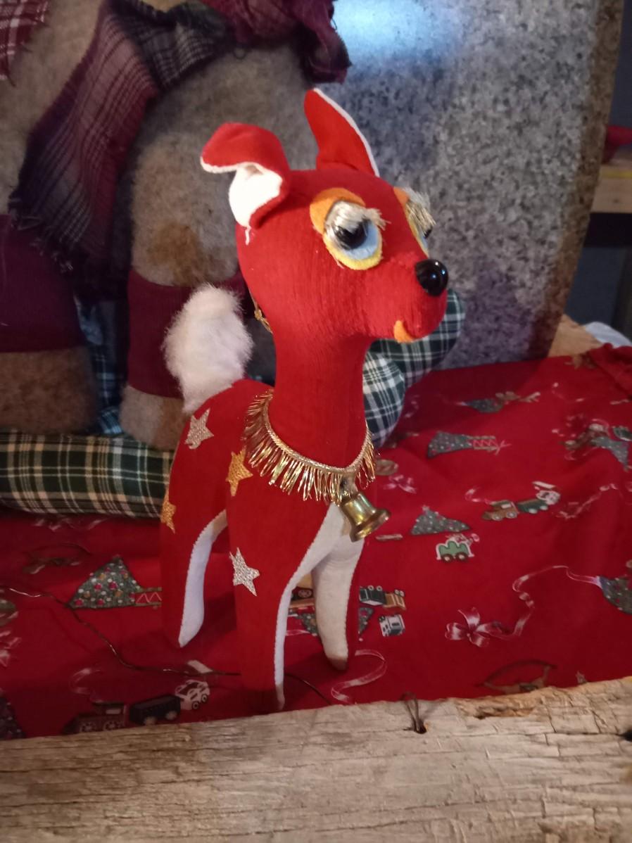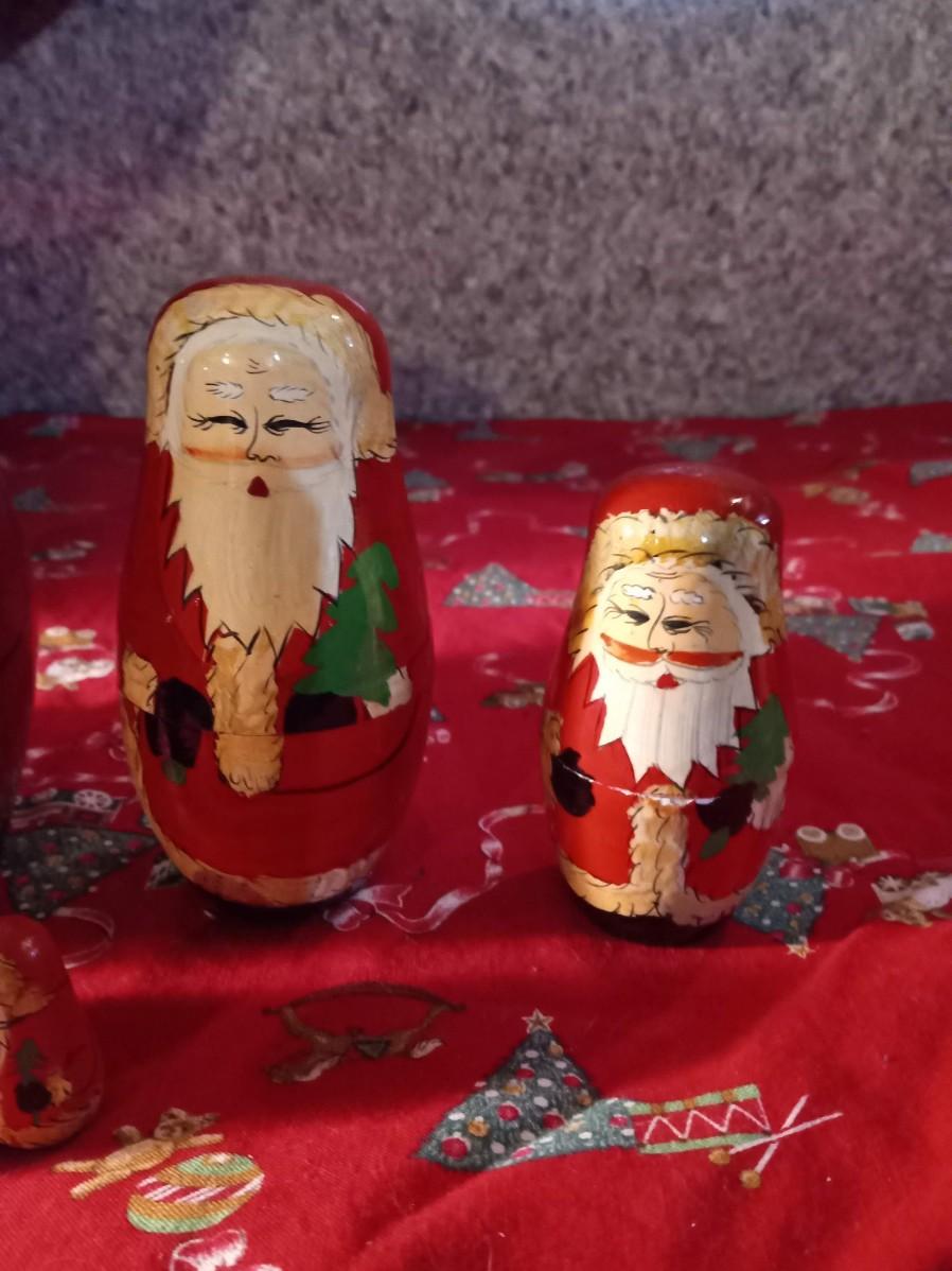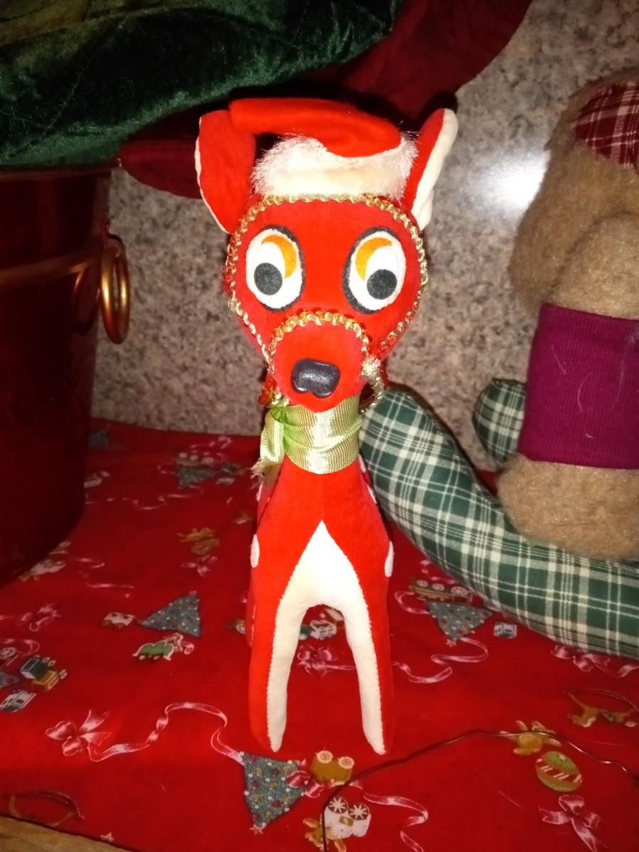 LOT 316  TWO VINTAGE REINDEER, LARGE TIN TUB, NESTING SANTA DOLLS AND MORE  (HD)