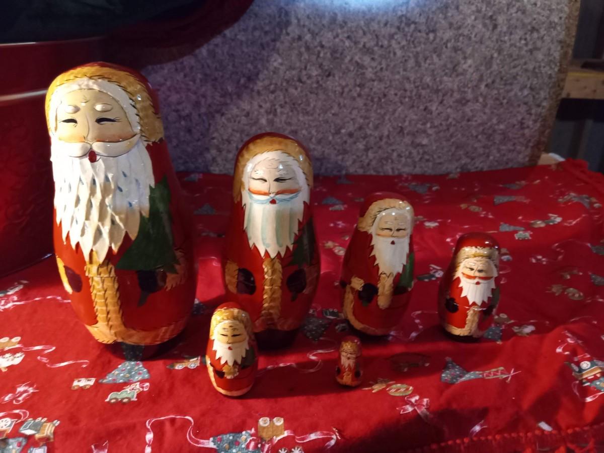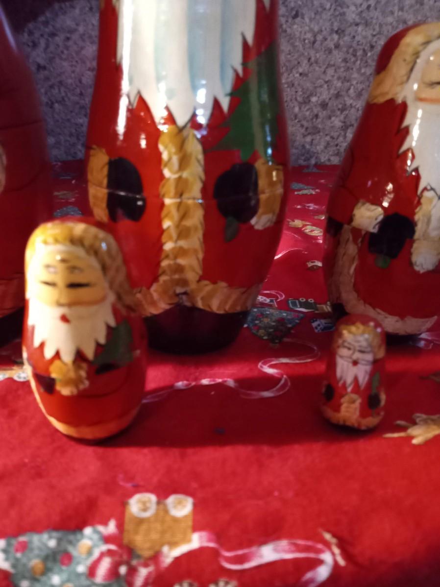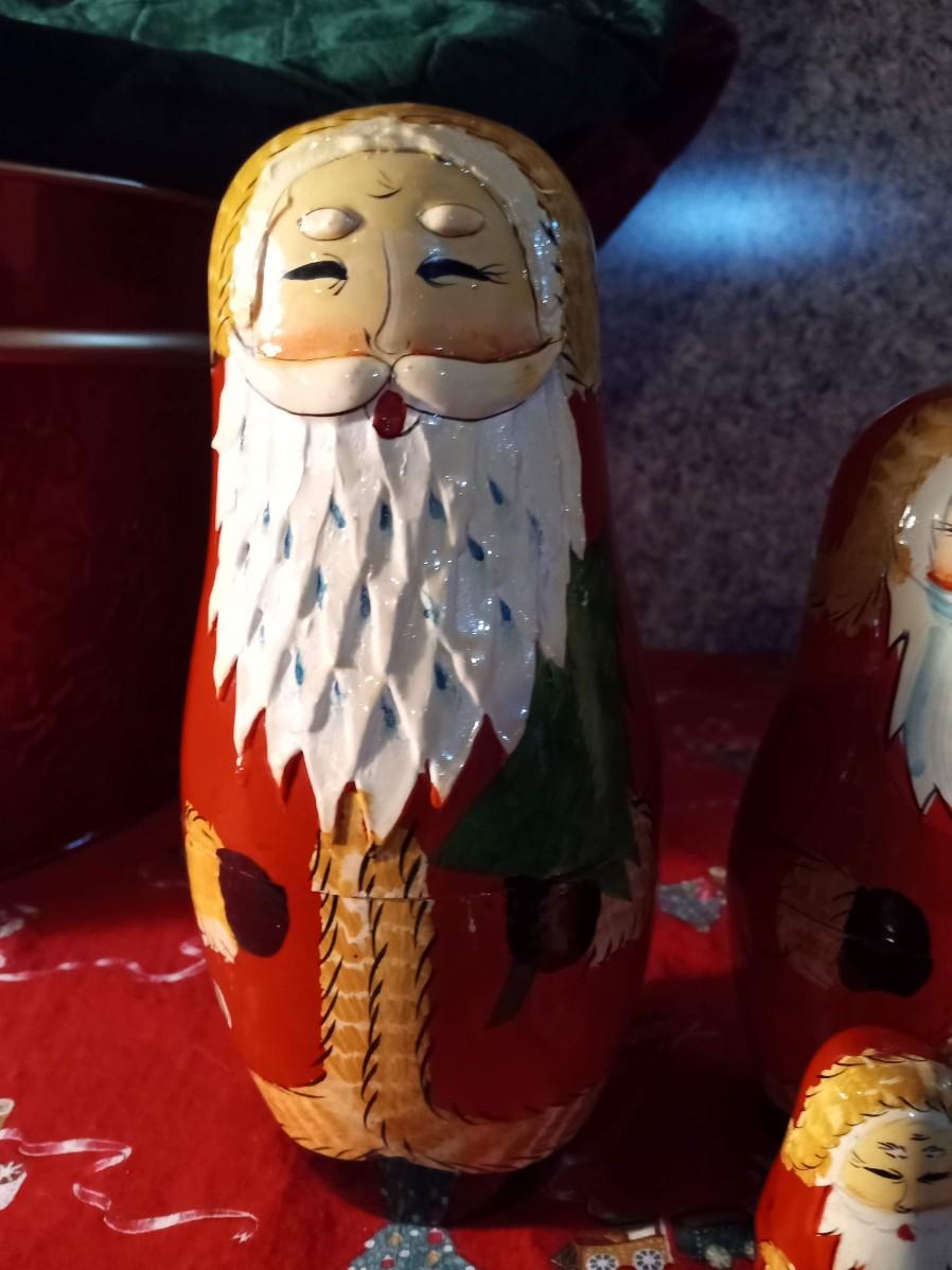 LOT 316  TWO VINTAGE REINDEER, LARGE TIN TUB, NESTING SANTA DOLLS AND MORE  (HD)