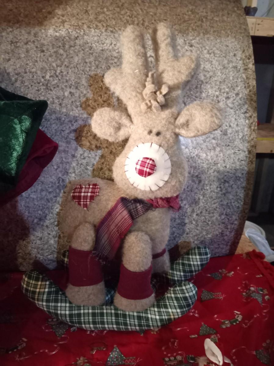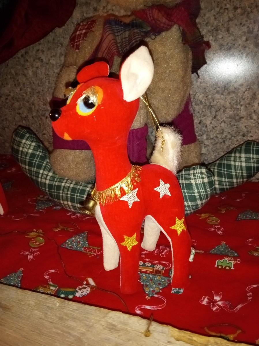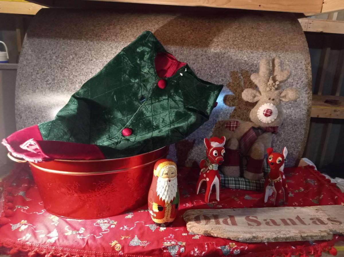 NICE TREE SKIRT, OLD SANTA HANGING SIGN, PLUSH REINDEER