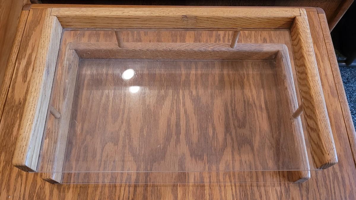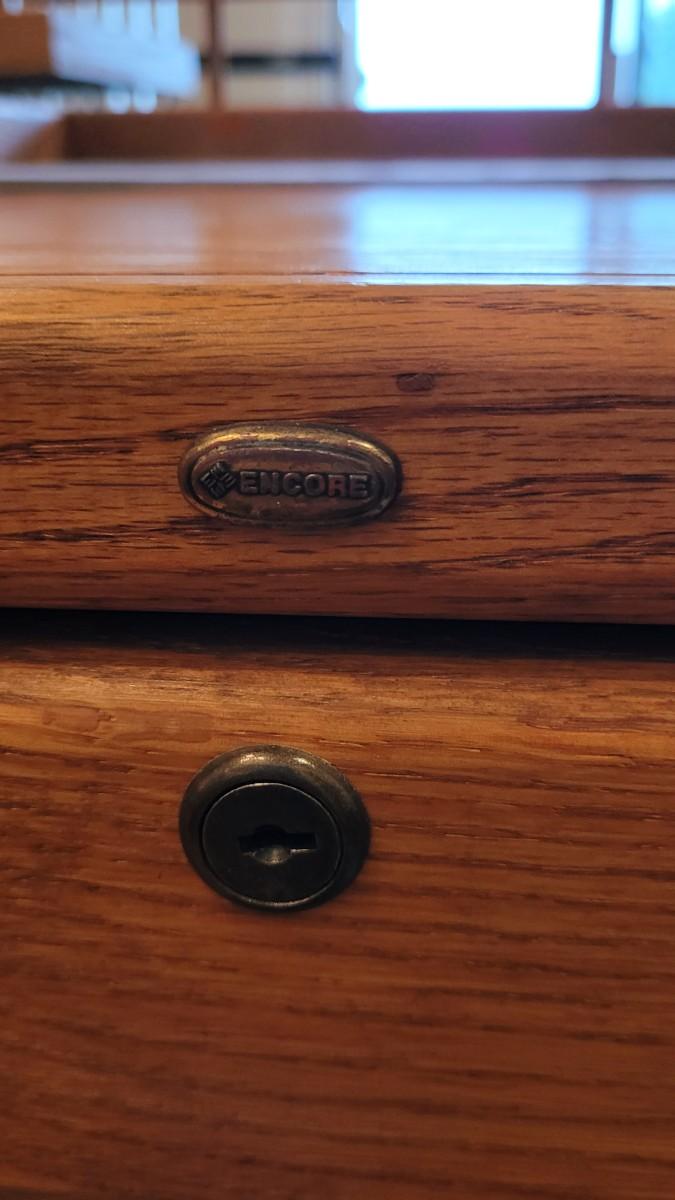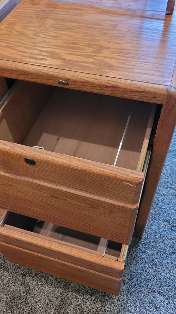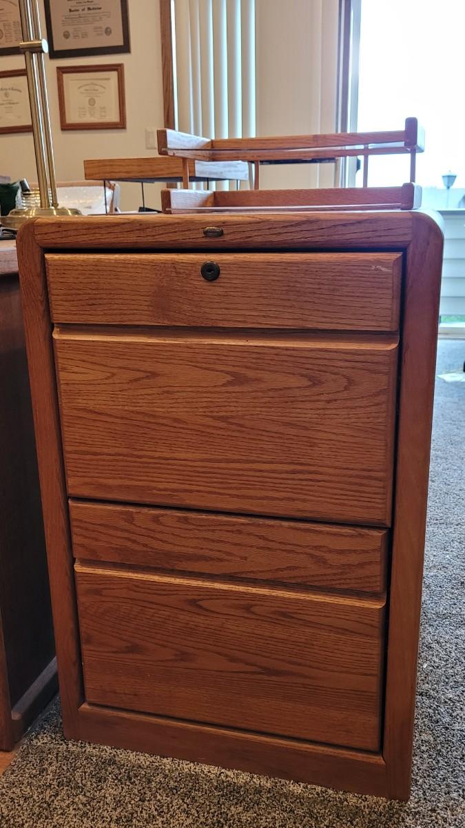 Lot 316: Encore 2 Drawer Wood File Cabinet and Oak & Plastic Paper Tray