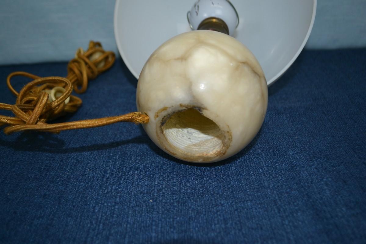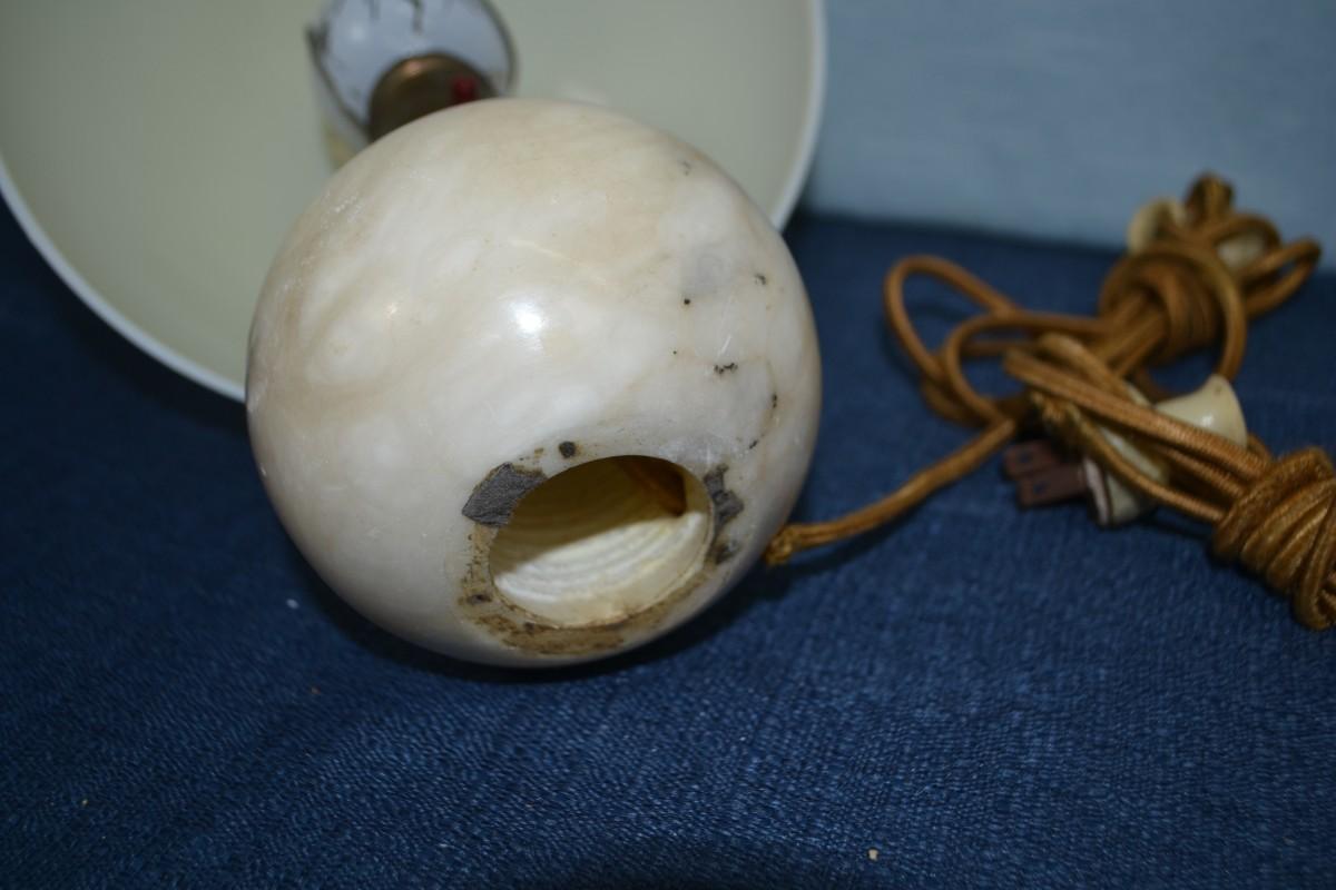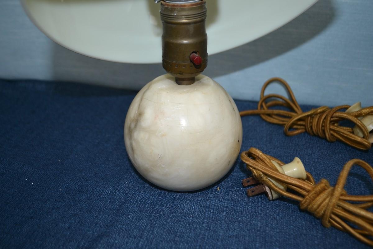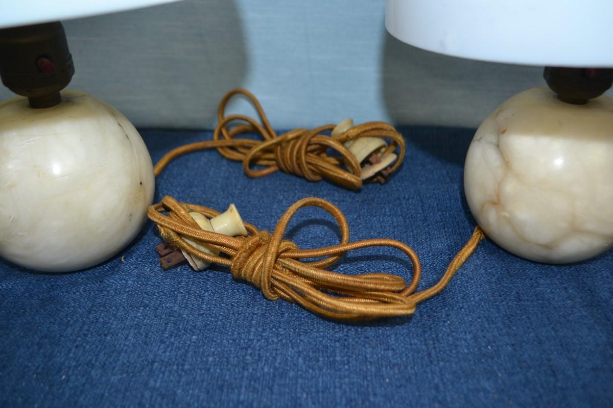 LOT 316. PAIR OF 12" MUSHROOM LAMPS WITH PLASTIC SHADE AND STONE BASE