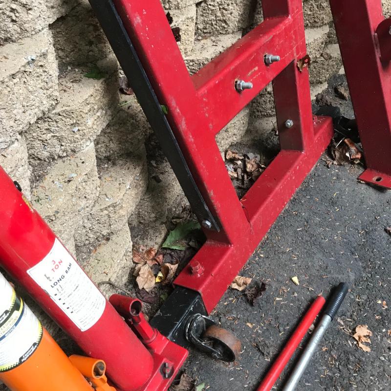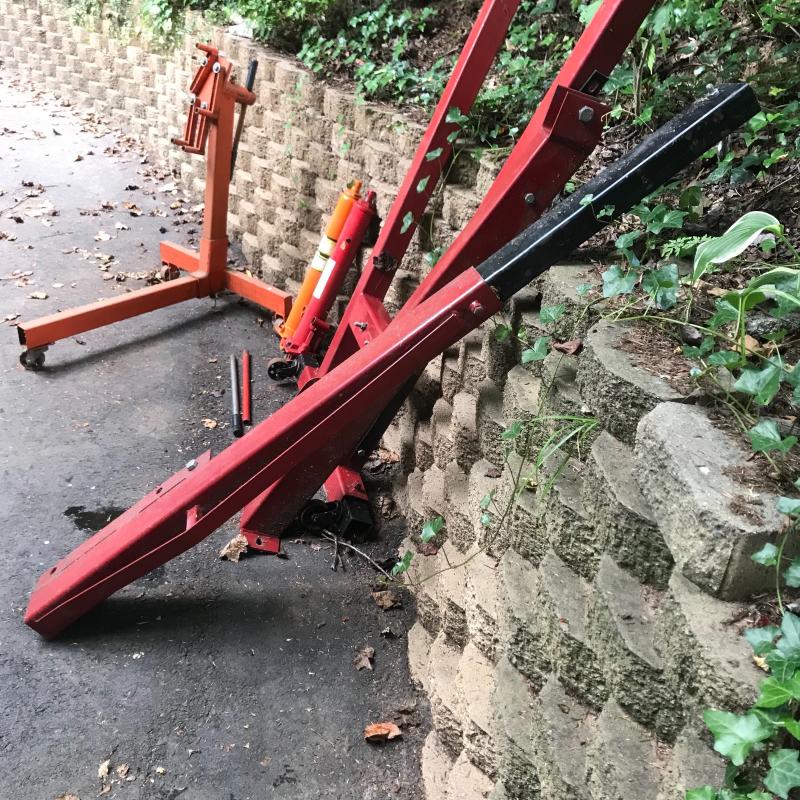 What a find! Cherry picker and engine stand with an extra orange jack. Sterling Transitions team did not assemble, but all parts appear to be in working order. Engine stand rolls a little wobbly, but will get the job done. Local pick up only.