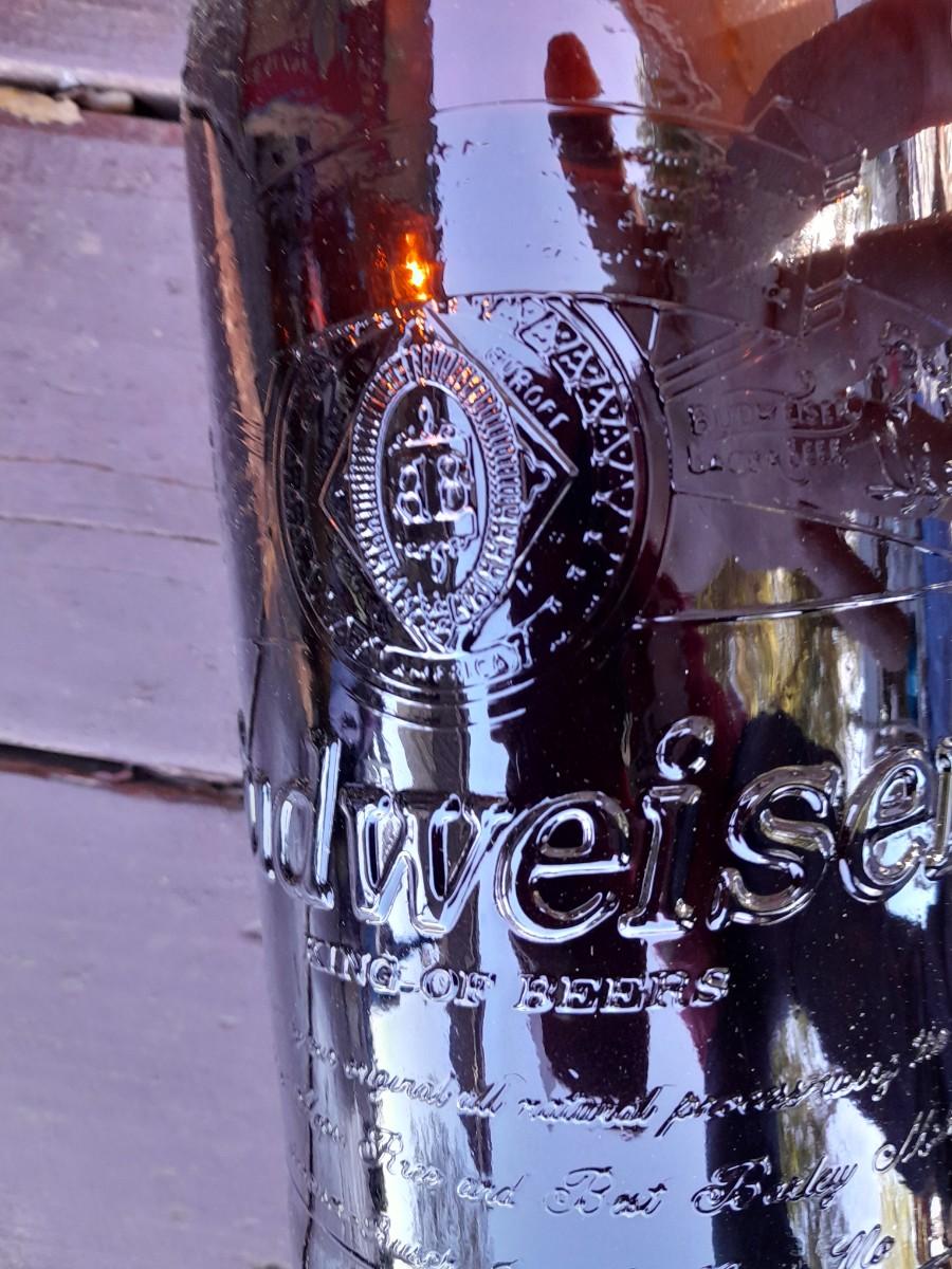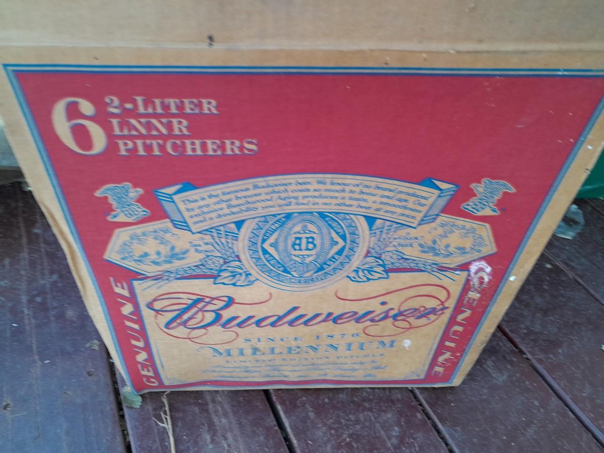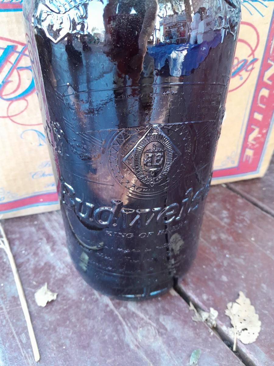 THREE TALL 16" BUDWEISER BOTTLES, SORRY THE BOTTLES ARE EMPTY!~