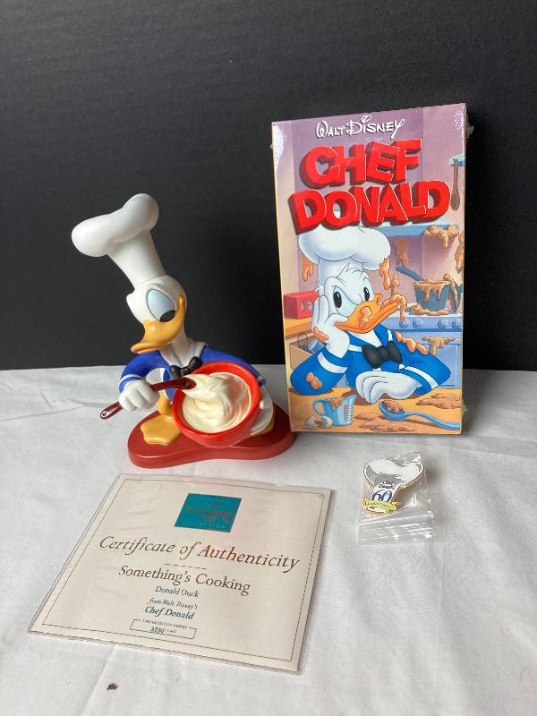 Chef Donald VHS Tape and porcelain figurine. Comes with certificate of authenticity and original box