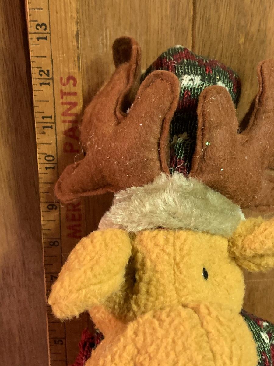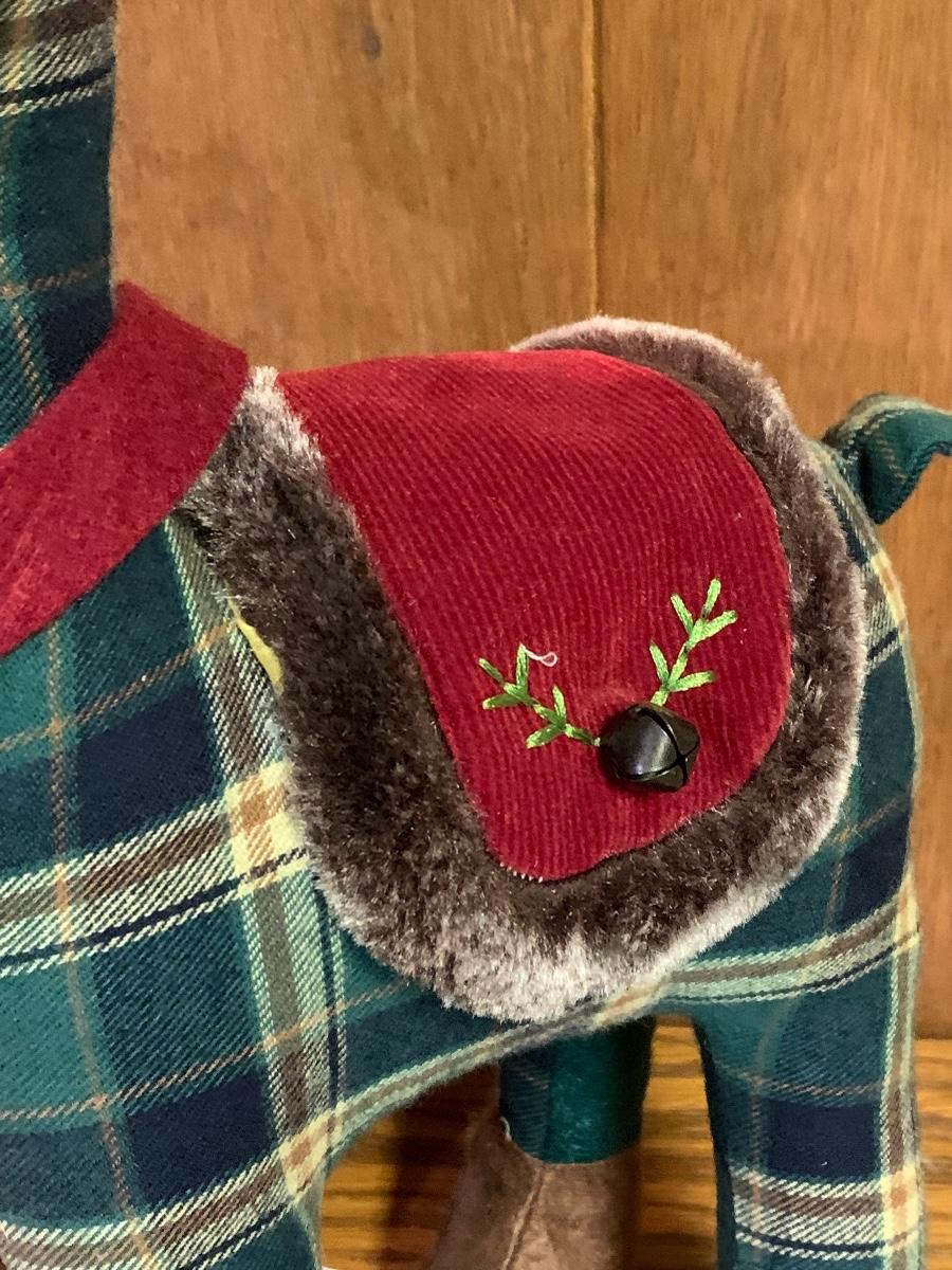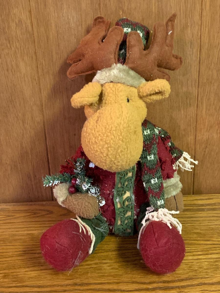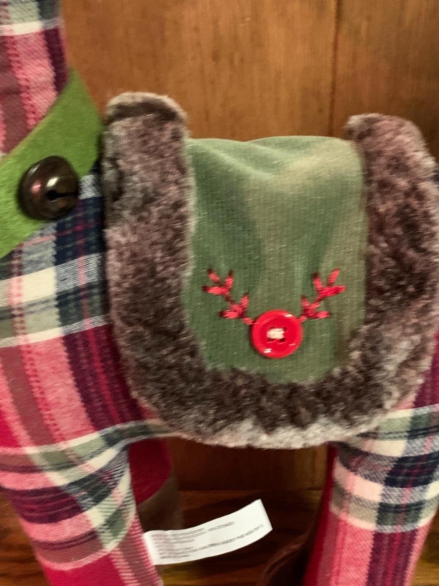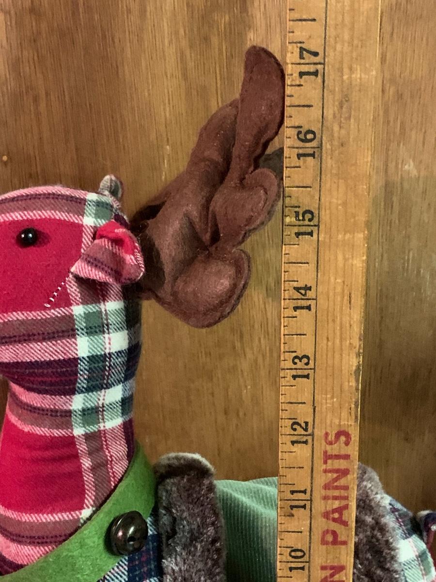 Tall gold tone deer candle holders come apart for easier storage, plaid deer, a moose with a metal sleigh to add to any holiday decorating.