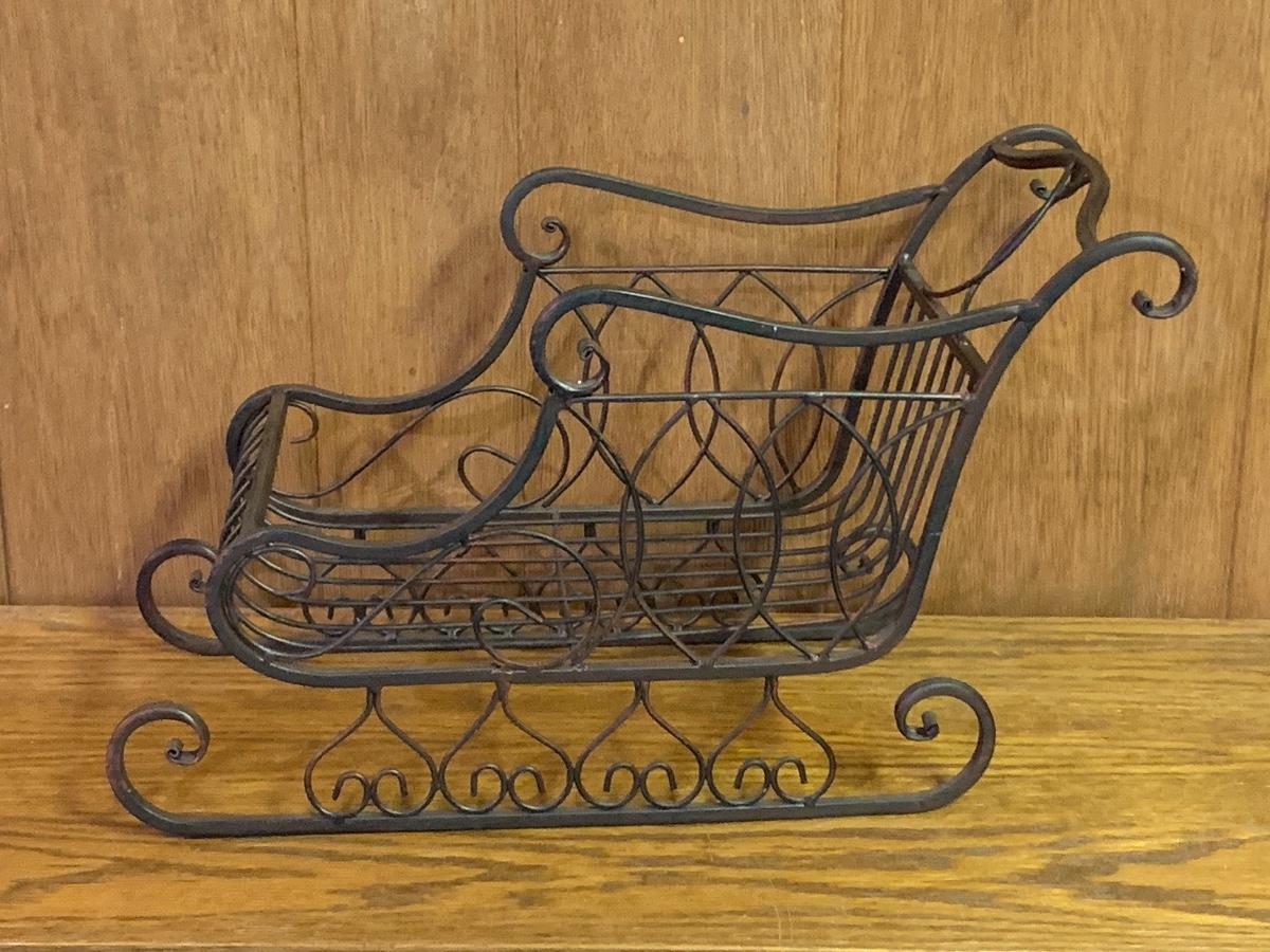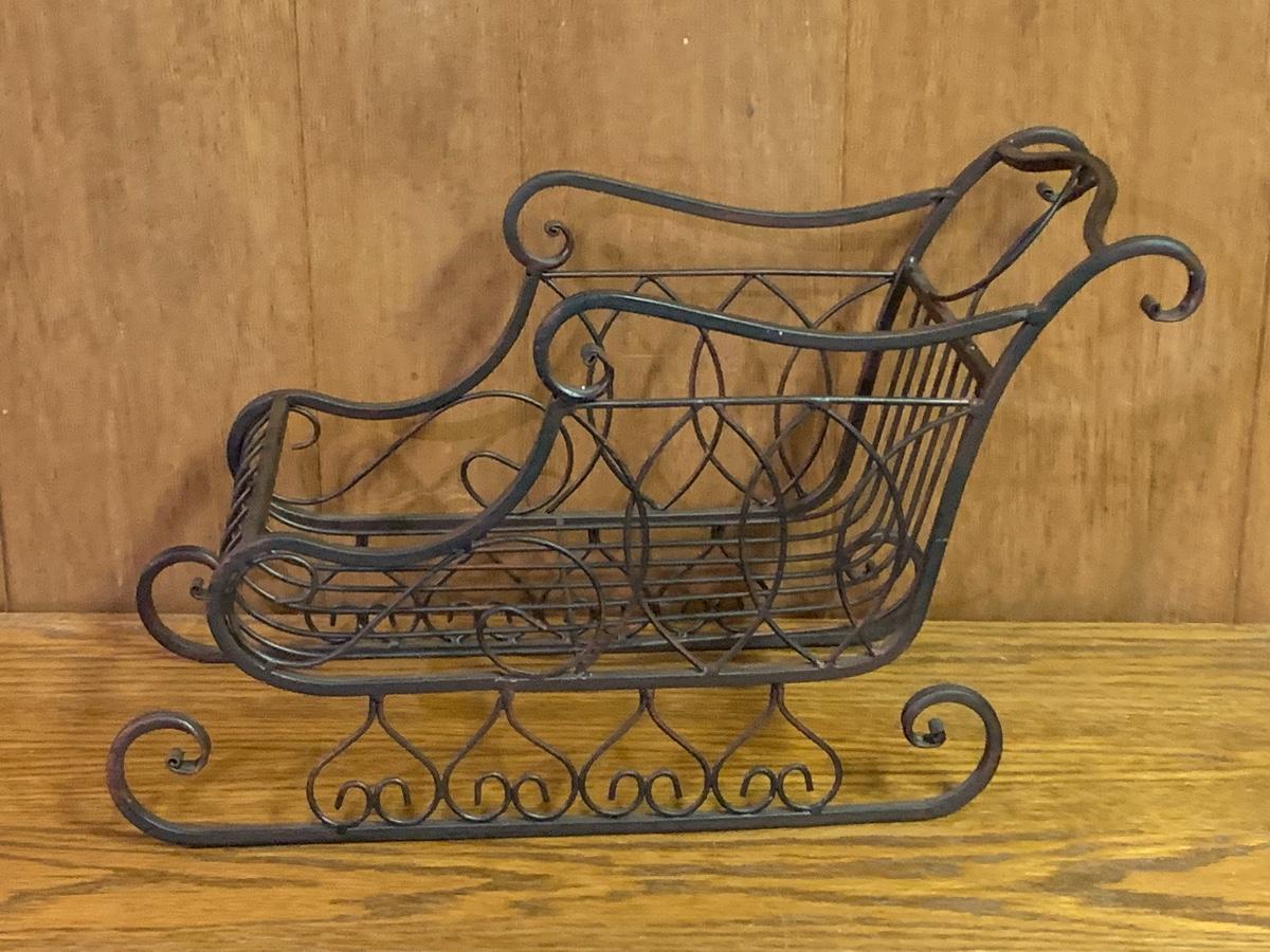 Lot 317: Tall Gold Candleholders, Plaid Reindeer, Sleigh and More