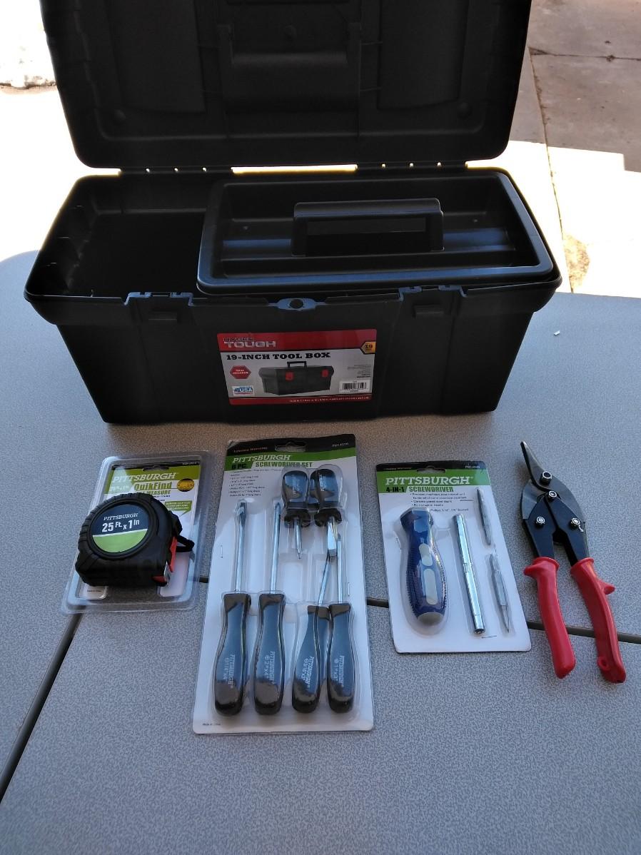 NEW HAND TOOLS AND A TOOLBOX