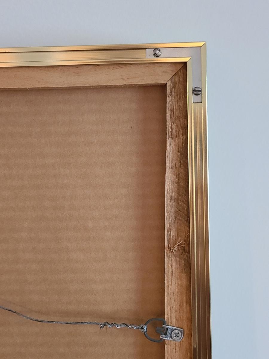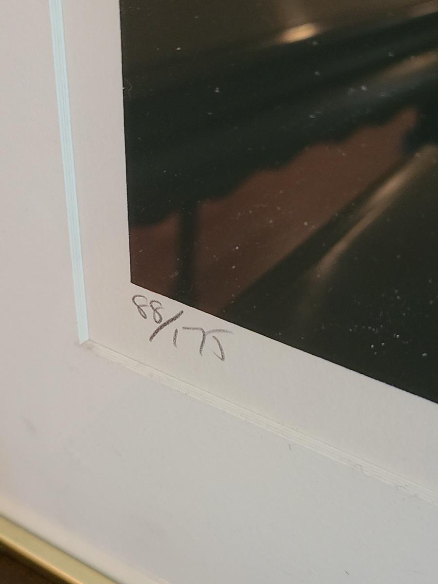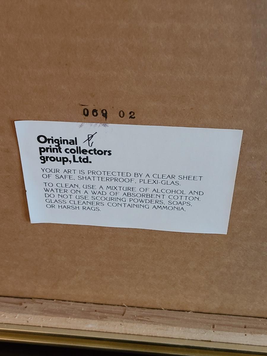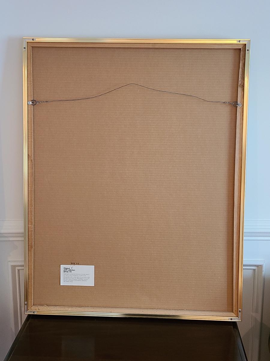 This beautiful piece of artwork pops when you see it. Large in size, measuring 29x36 inches tall. It is signed and numbered. This has been professionally framed and matted in a metal gold frame, but the frame is coming apart at the edges and needs to be readjusted. Please see all pictures as they are the best representation of the items. The pictures show condition, measurements if taken, and what is included in the lot. Due to the large amount that we photograph and the time frame, we are not always able to take measurements. All items unless noted, are pre-owned and have been used. If you purchased furniture, you must bring help. We do not allow one person to carry large furniture out on their own. Bring help, tools and a truck for the safety of our client’s homes, and your personal safety. Company policy. Thank you.