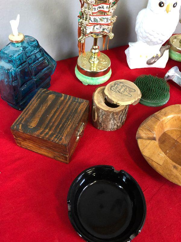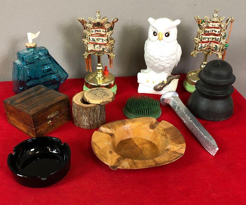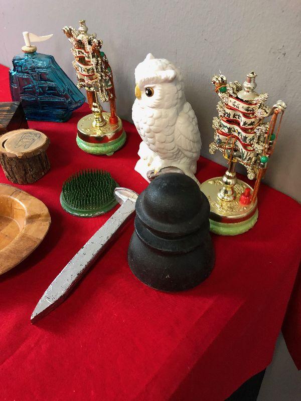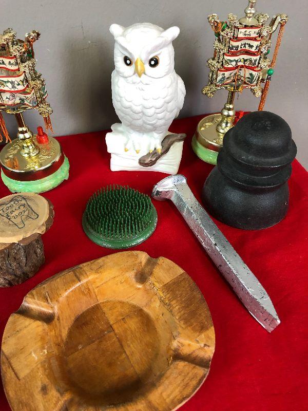 Lot 317 Misc. Décor - owls and antique rail spikes etc.,