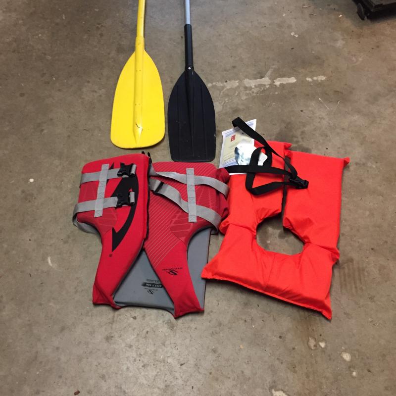 13 foot (apprx) Coleman Canoe with two seats. Has been kept under a deck outside. Does not appear to have any damage. Lot also includes two Sterns Personal Flotation Devices and two Paddles(Largest Paddle Measures 60” and has Defect Towards End). Local Pickup Only . Bring help to load as it is located in back yard.