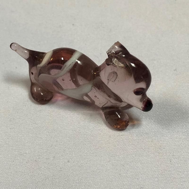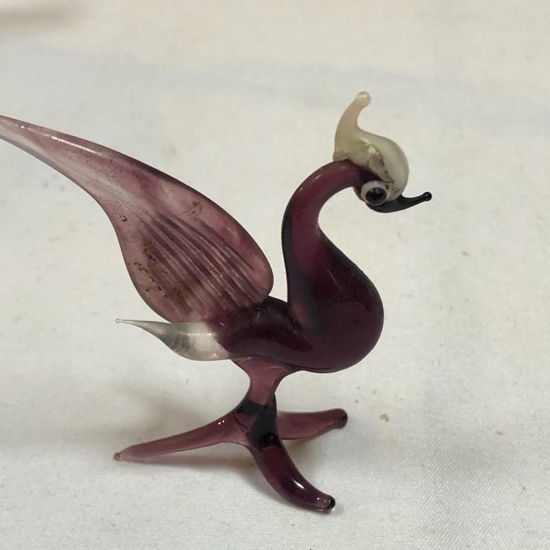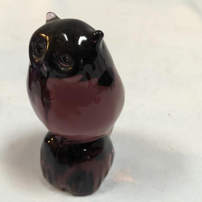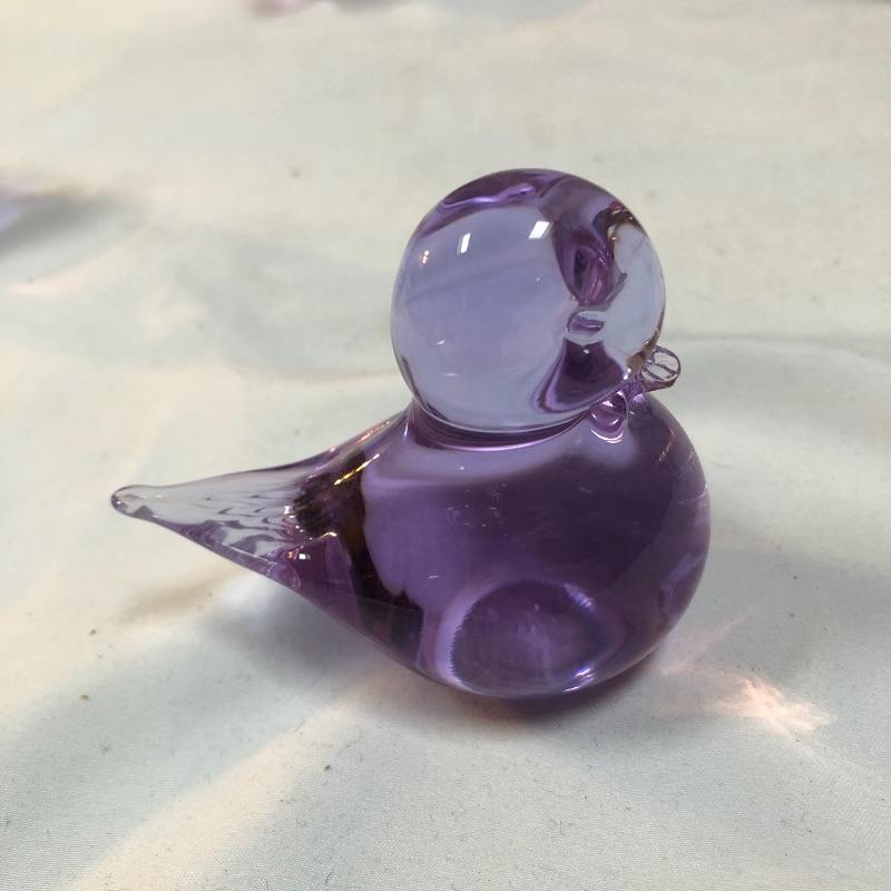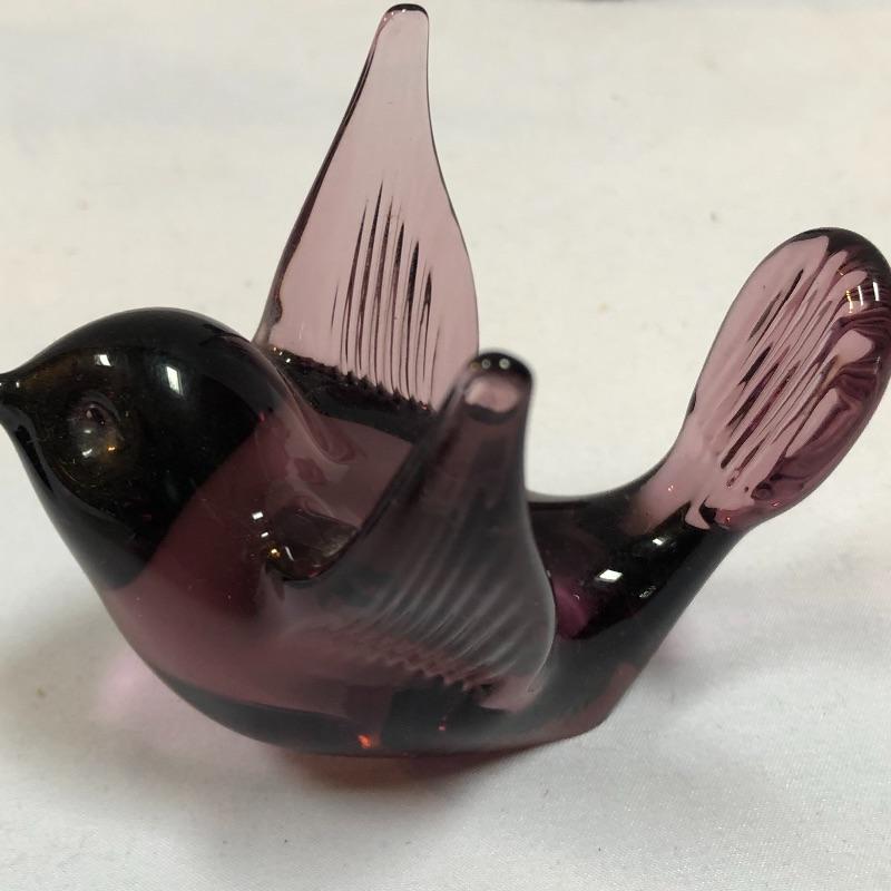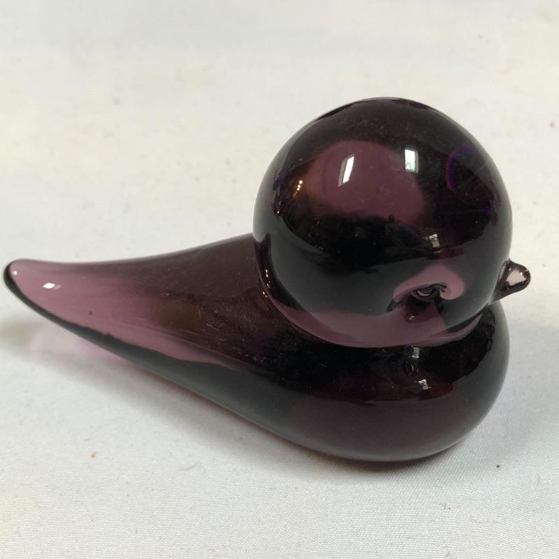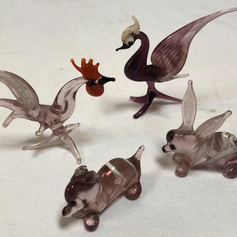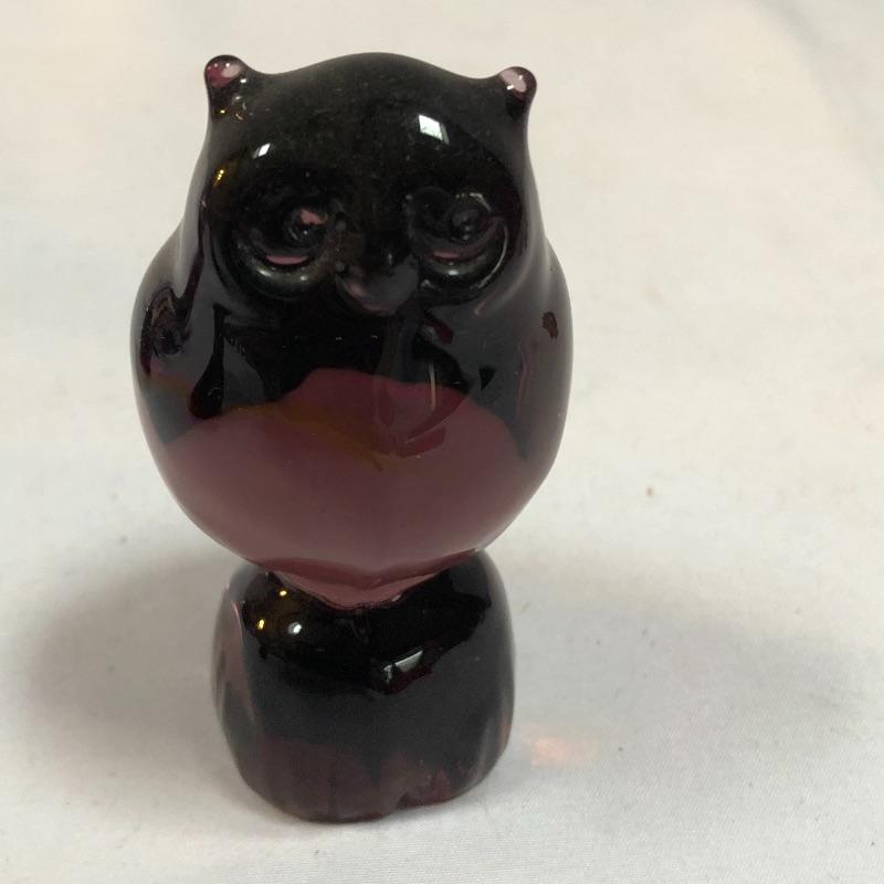 Enjoy this cute lot! This lot includes eleven pieces of glass with four of the pieces being hand blown. Note the different shades of purple. The large light purple Penguin has a small chip on his beak. The little bear cub has small chips on his ears. Shipping available.