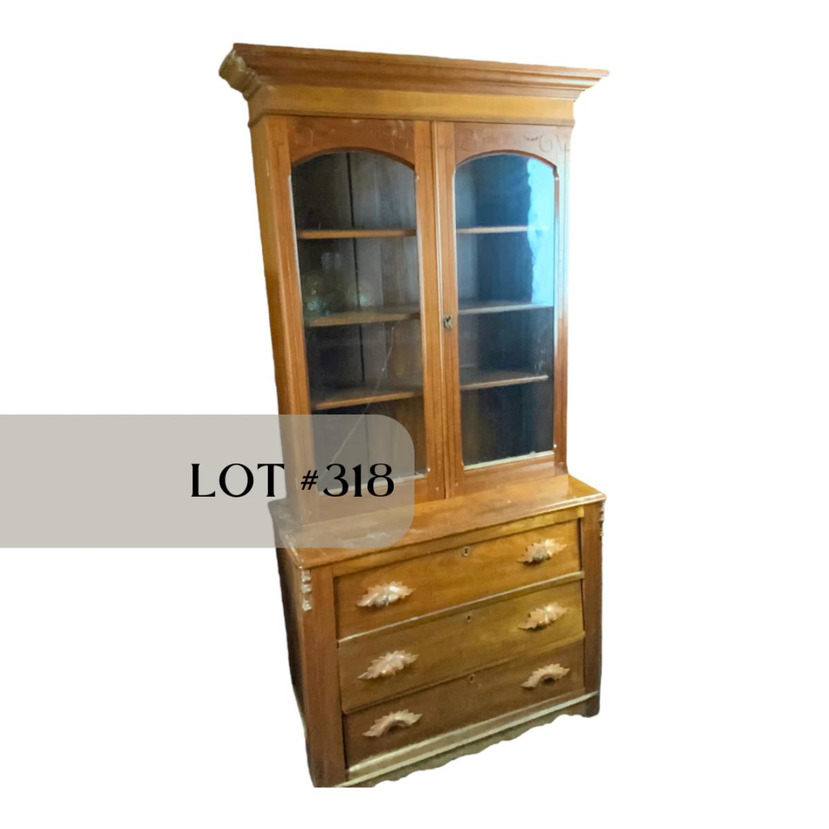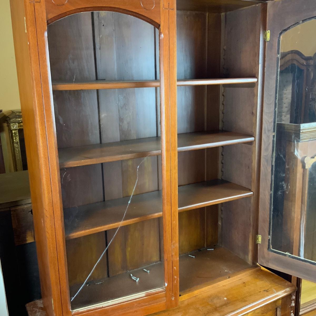 Delightful 2-Piece Walnut Cabinet. Comes apart for ease of transport. //::\\ Please see photos for details and condition. No attempt has been made to hide any imperfections. All items listed in this auction are warehouse items, and need to be cleaned. A majority of the items need restoration as well. All items are sold AS IS and WITHOUT GUARANTEE. If you are uncertain about an item, DO NOT BID. Due to the nature of this online auction in-person inspection is HIGHLY recommended. All Sales are FINAL. Pick Up Times are FIRM. Please confirm with your own schedule that you can pick up in the scheduled times listed in the Terms and Conditions. Any questions please message the auctioneer. DO NOT Contact The Harp Gallery.