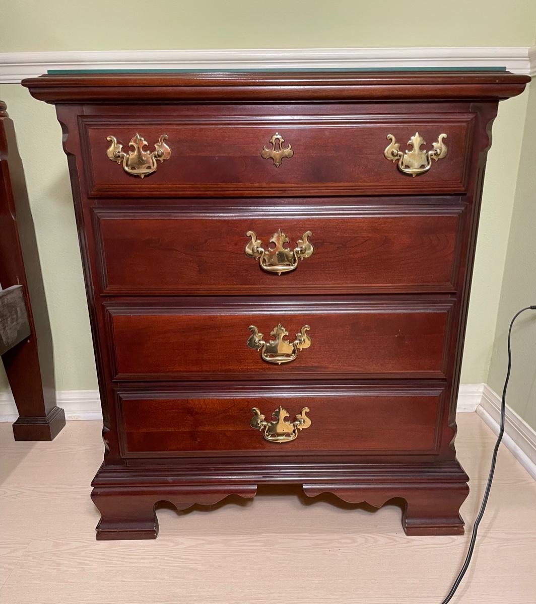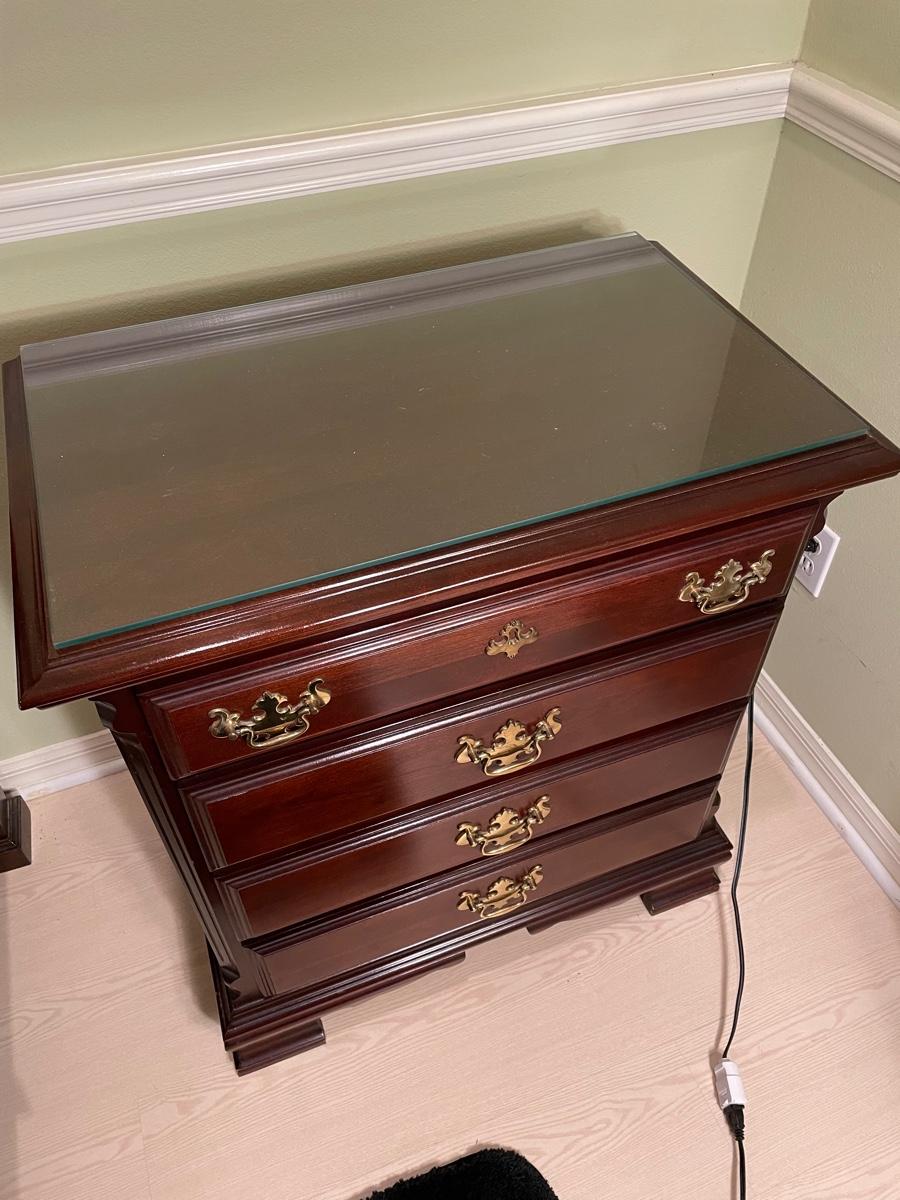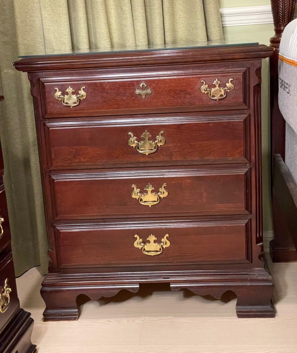 Queen Anne/Chippendale style night stands with heavy custom glass top protector. Excellent condition