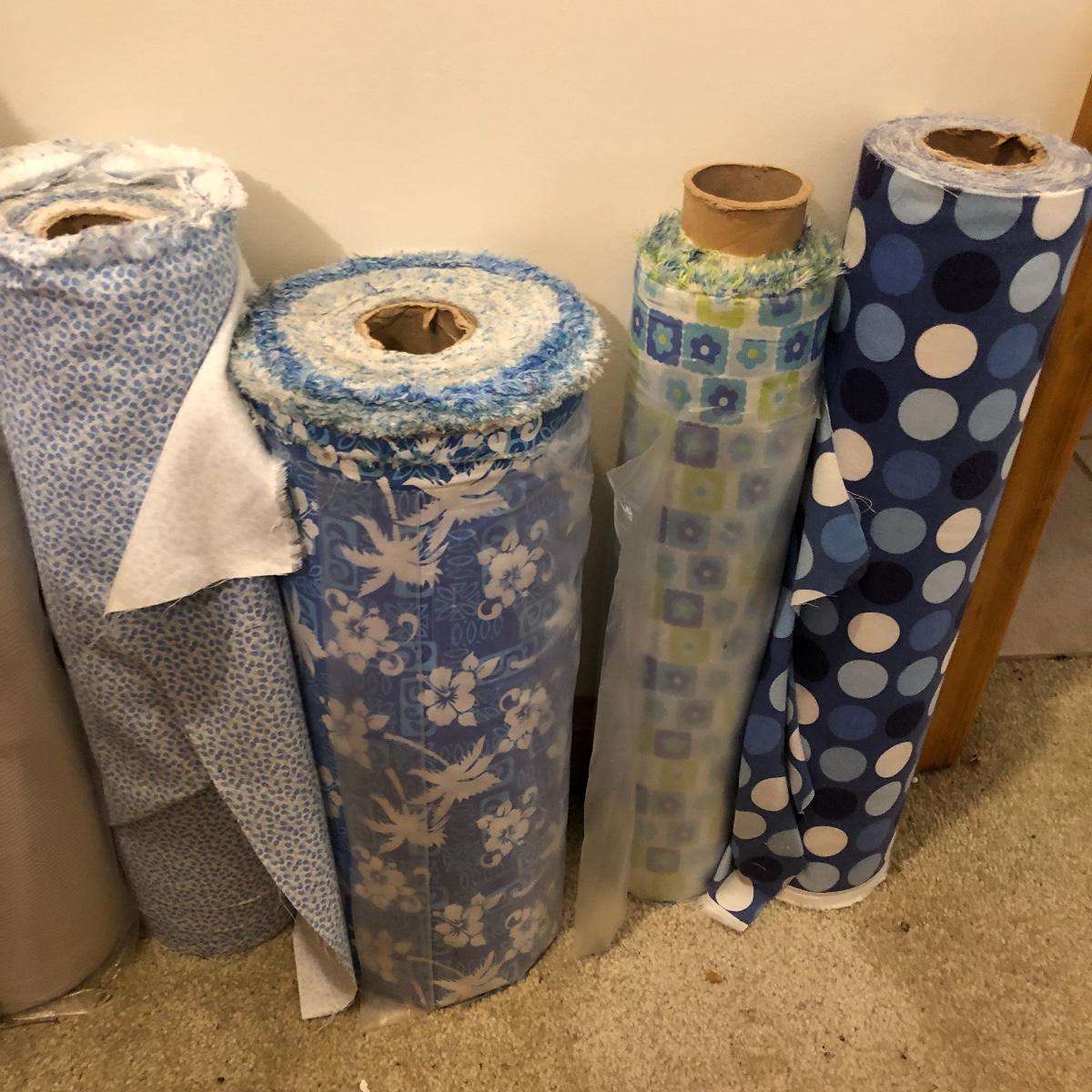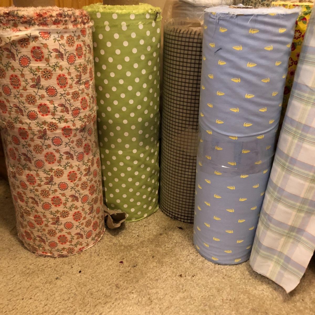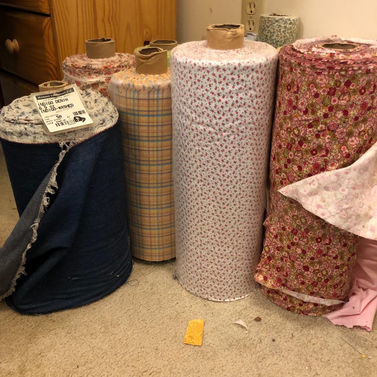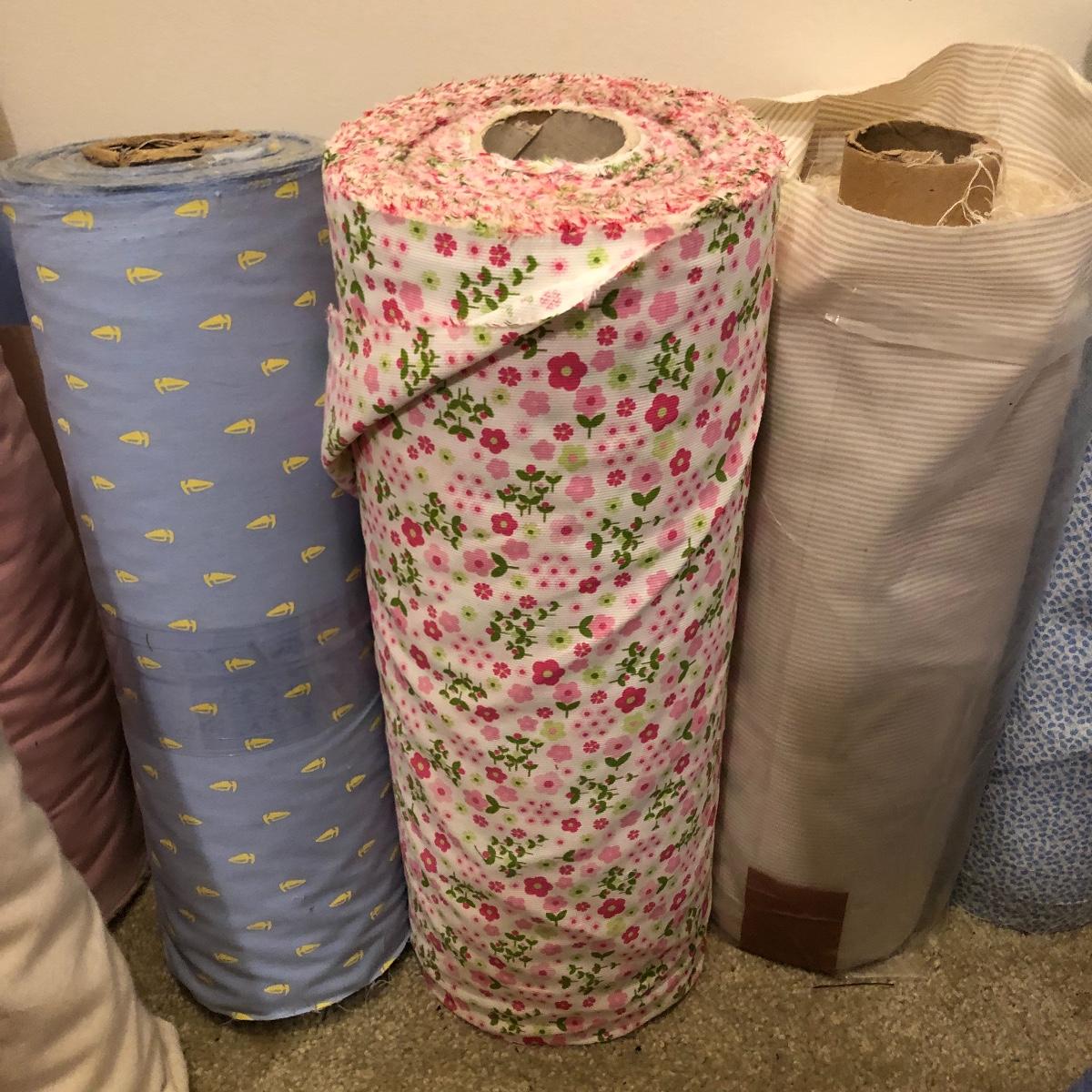 Quilters rejoice with this collection of thirty one bolts of fabric in a variety of sizes, colors and fabrics. Most bolts measure between 12” - 17” wide.