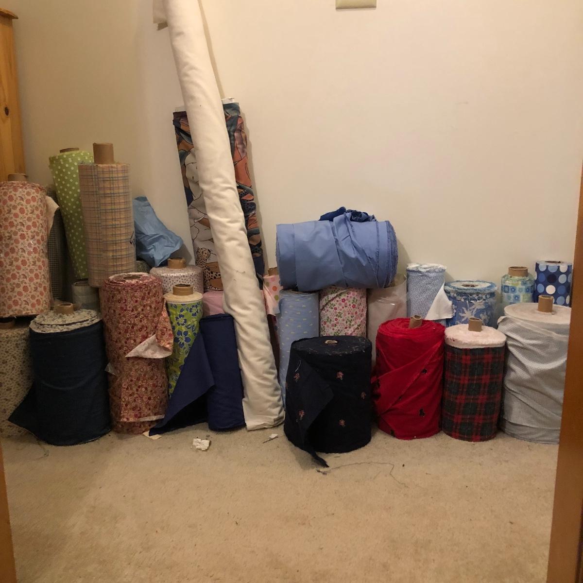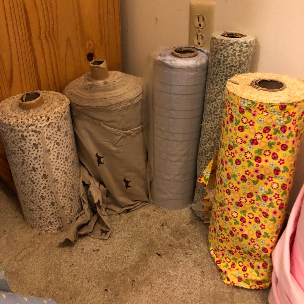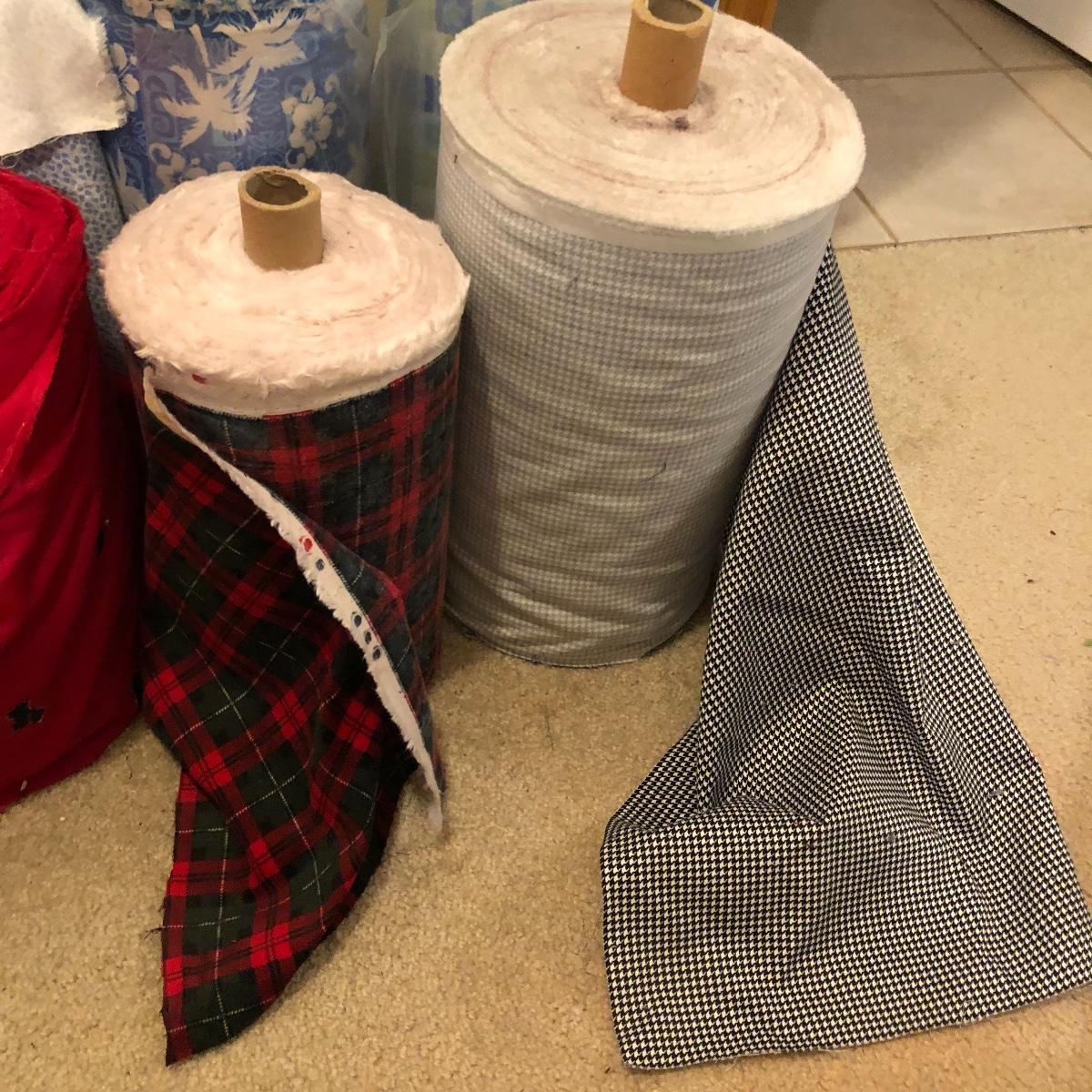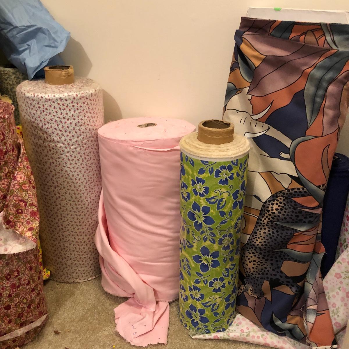 Quilters rejoice with this collection of thirty one bolts of fabric in a variety of sizes, colors and fabrics. Most bolts measure between 12” - 17” wide.