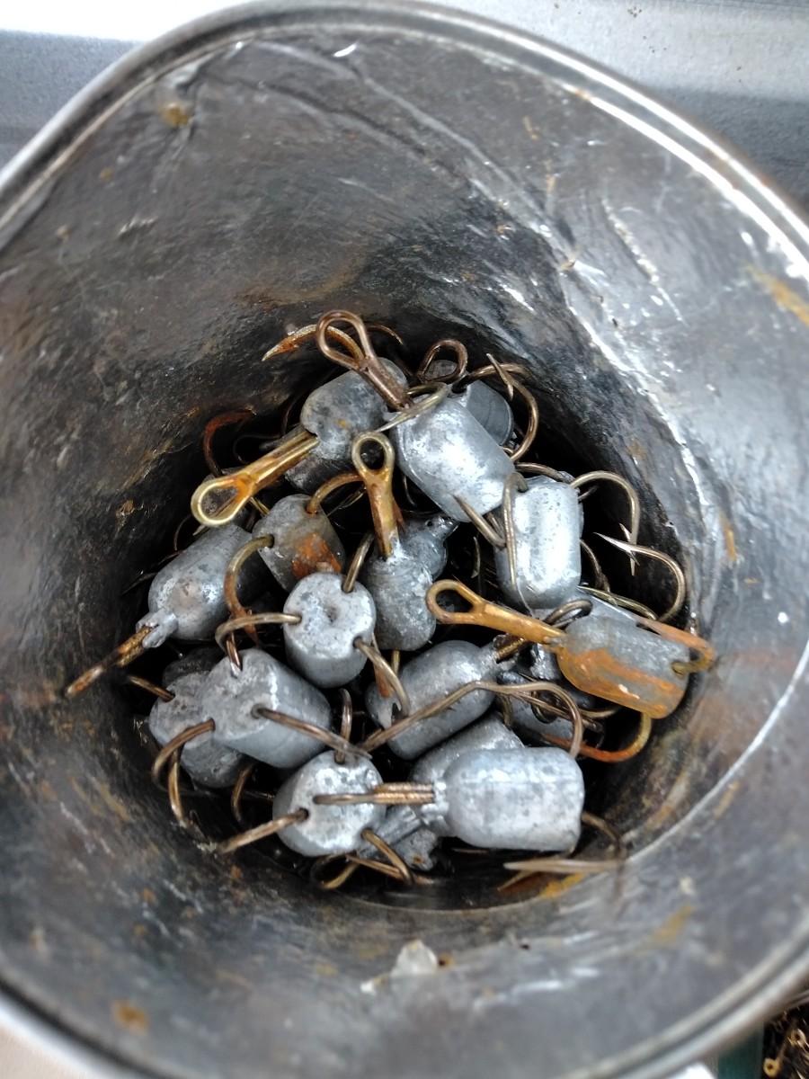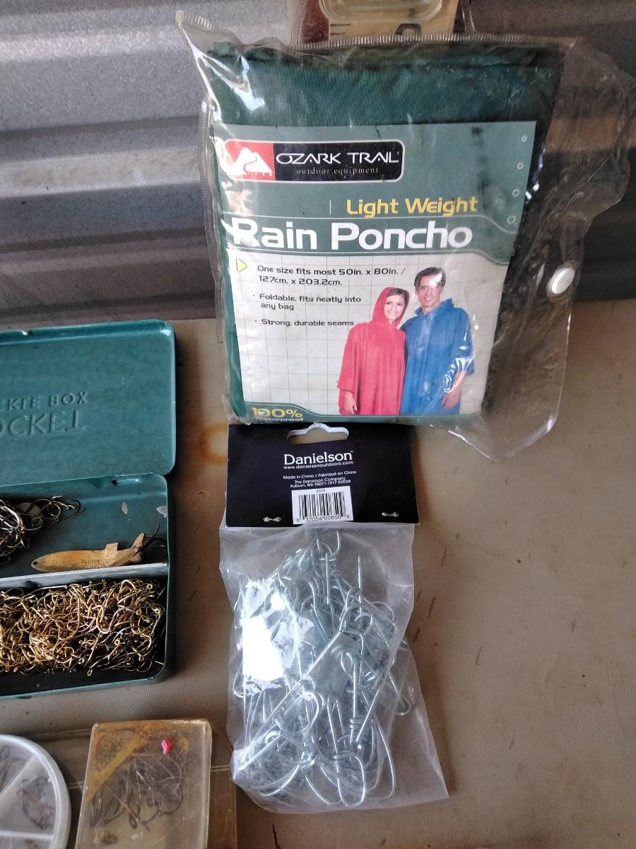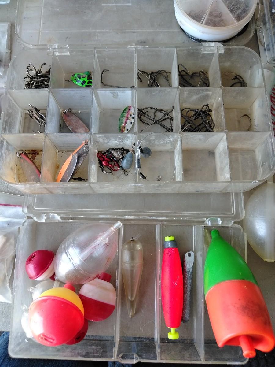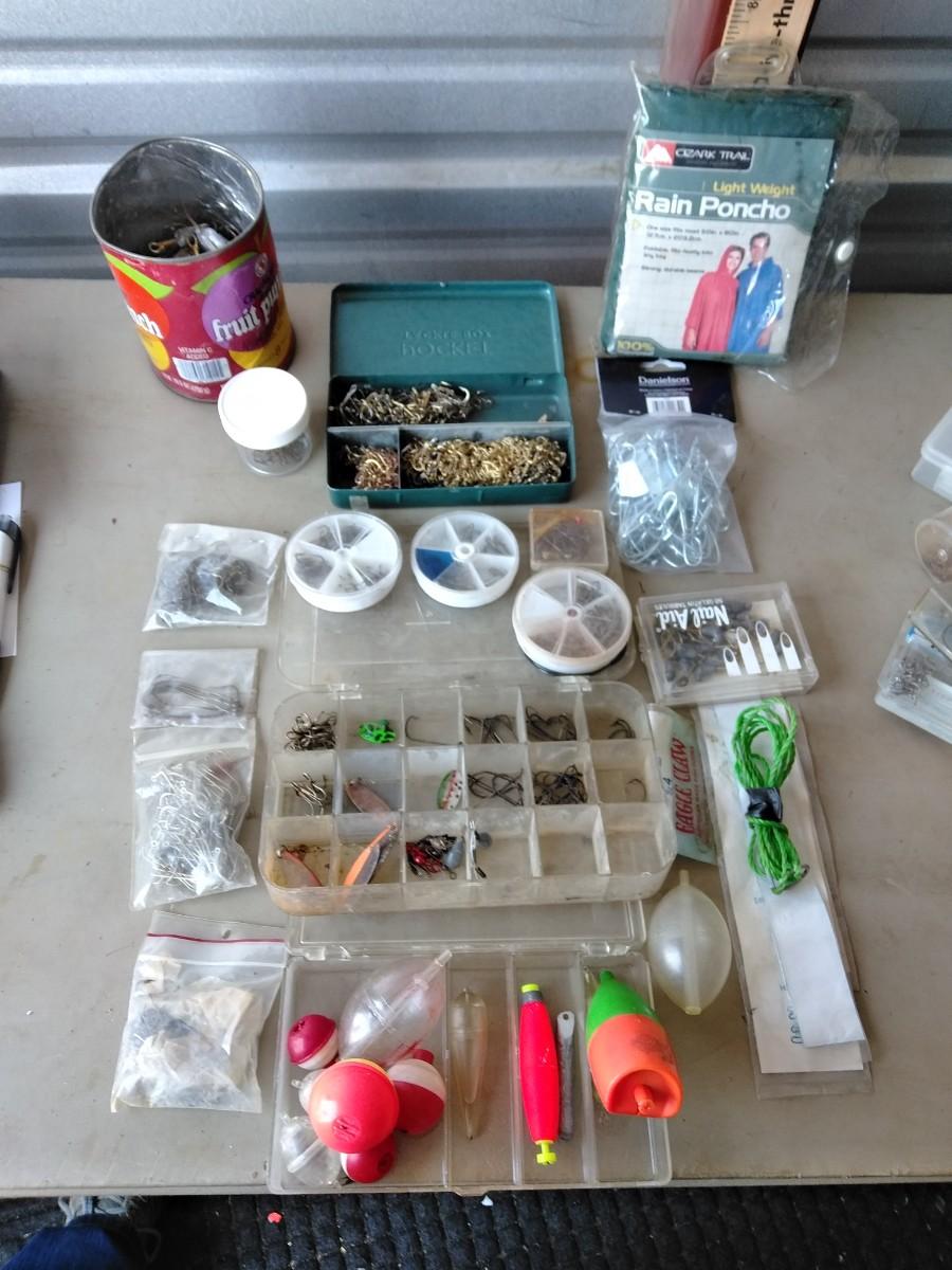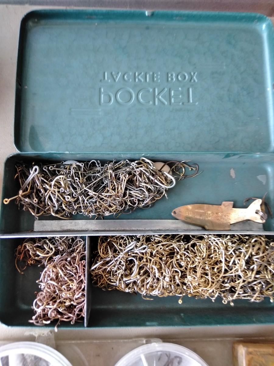 ASSORTMENT OF FISHING TACKLE, HOOKS, SINKERS, AND MORE