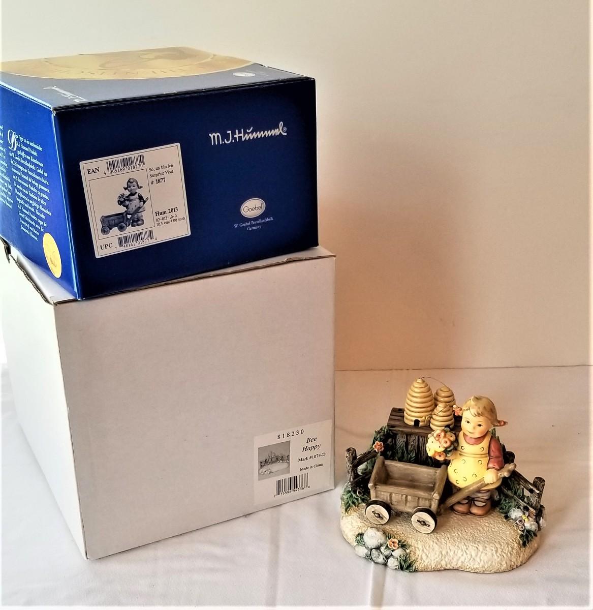 Two piece Hummel set - "Surprise Visit" and "Bee Happy". Musical - comes with boxes. 4" tall. Good condition.