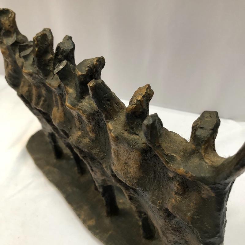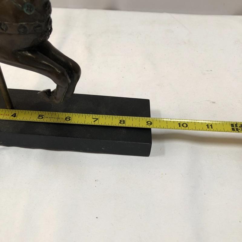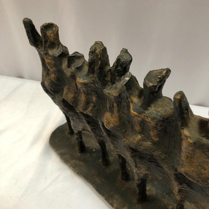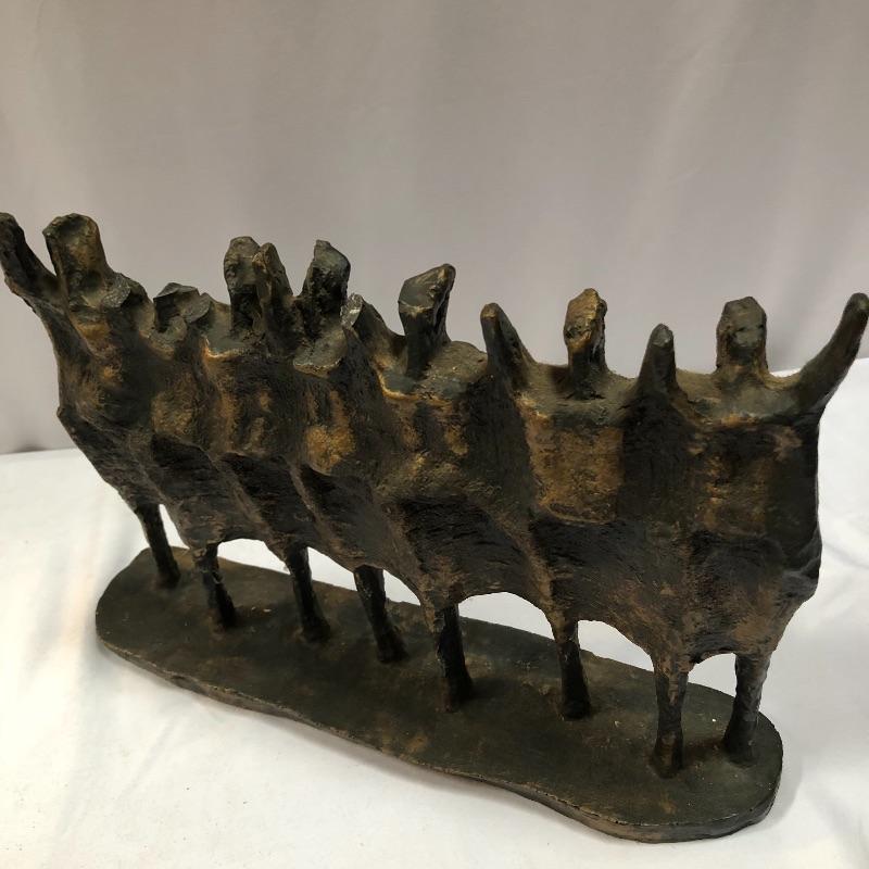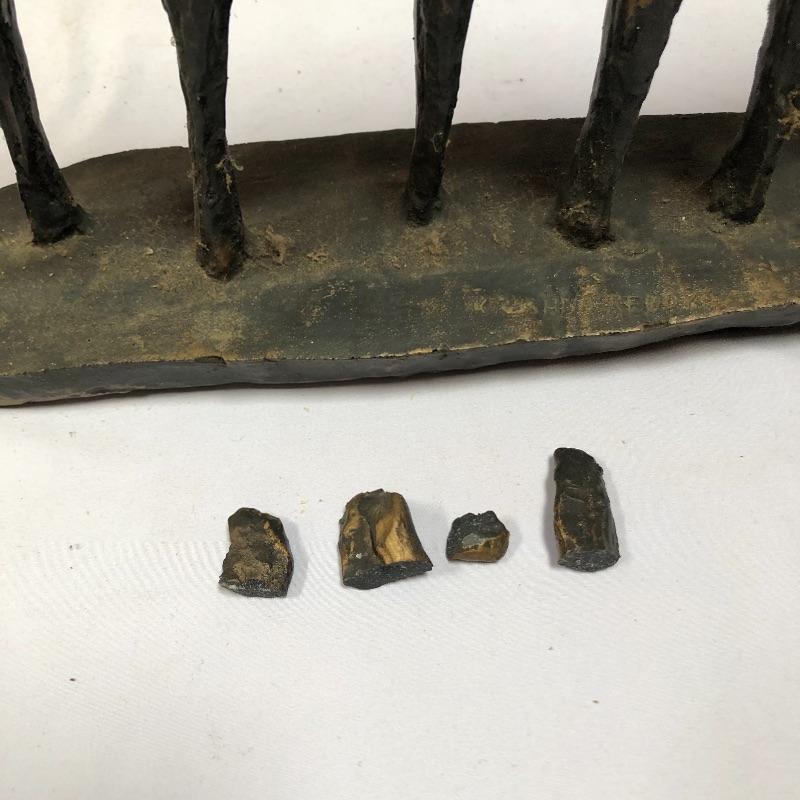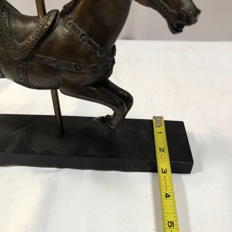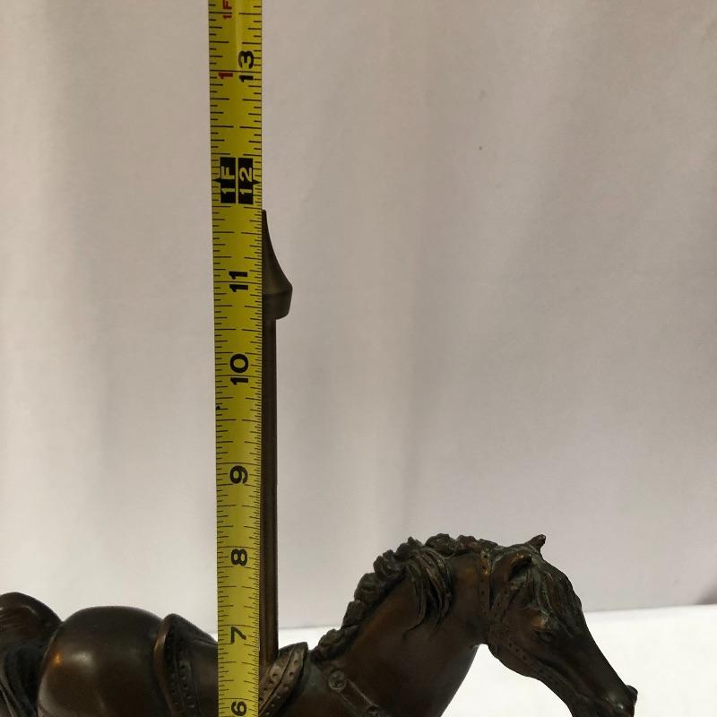 This lot includes two items-one a bronze carousel horse and the other a Krishna Reddy sculpture. The Krishna Reddy sculpture is chipped with the pieces included. The sculpture is named, “The Vision.” Shipping Available.