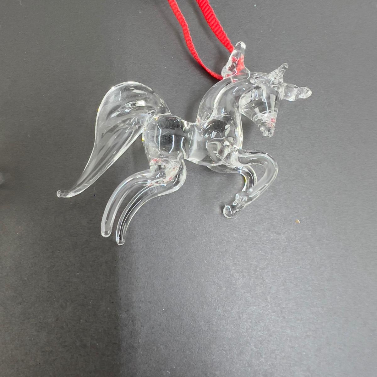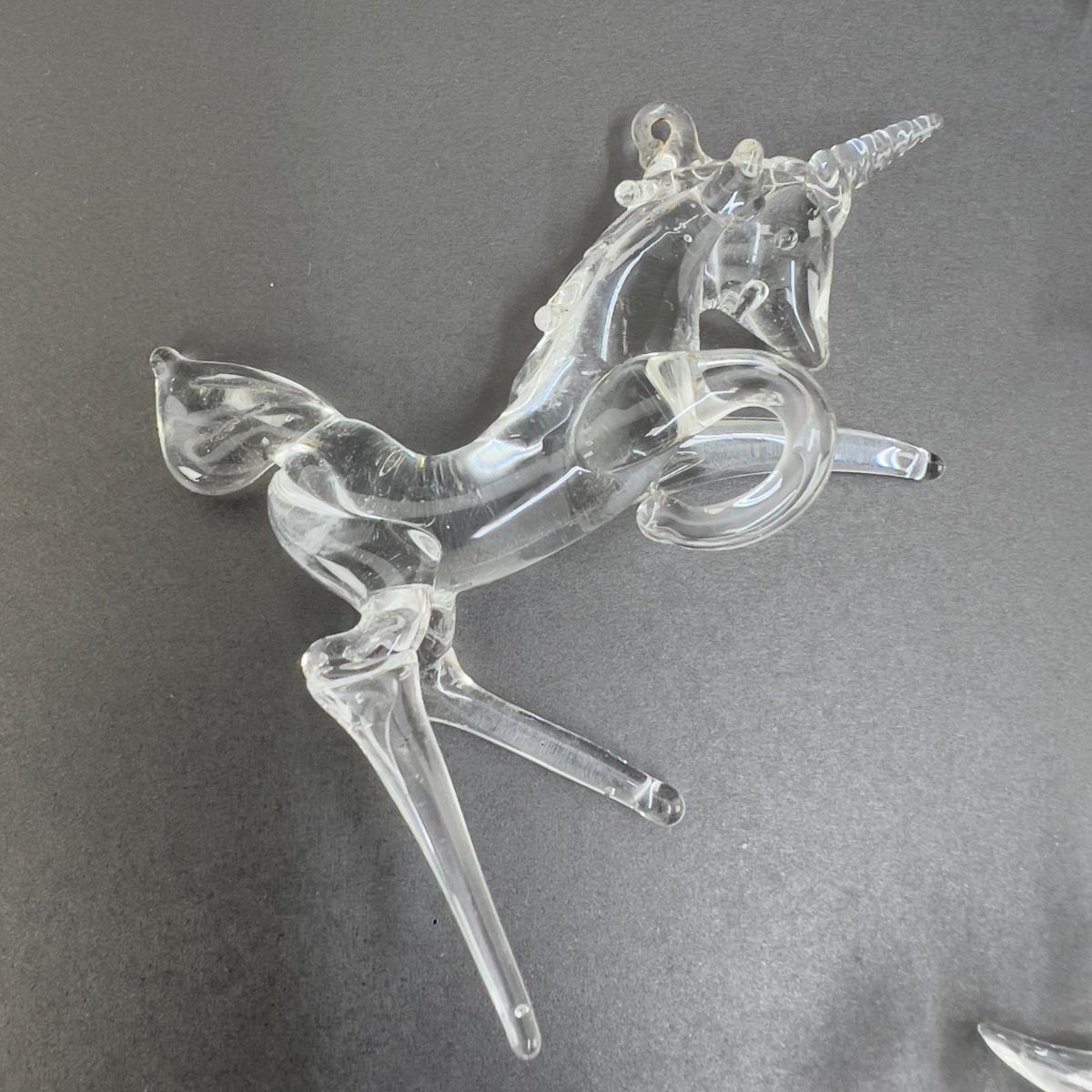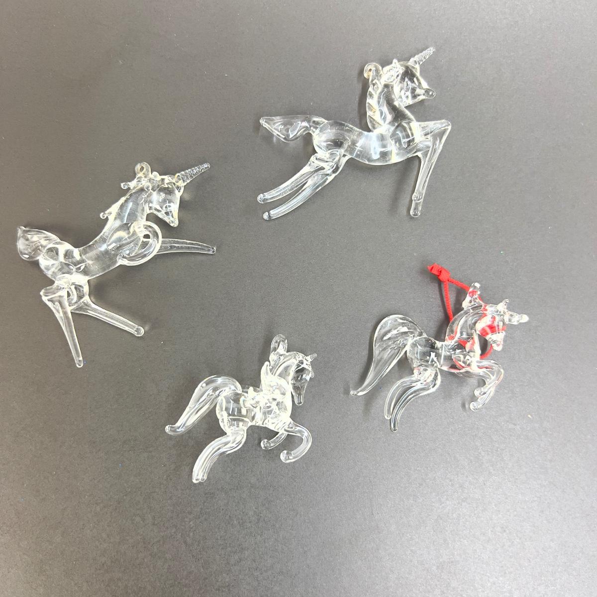 Lot 318. Lot of Four Clear Glass Unicorn Ornaments