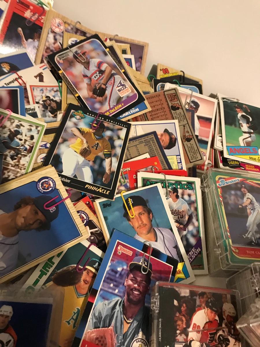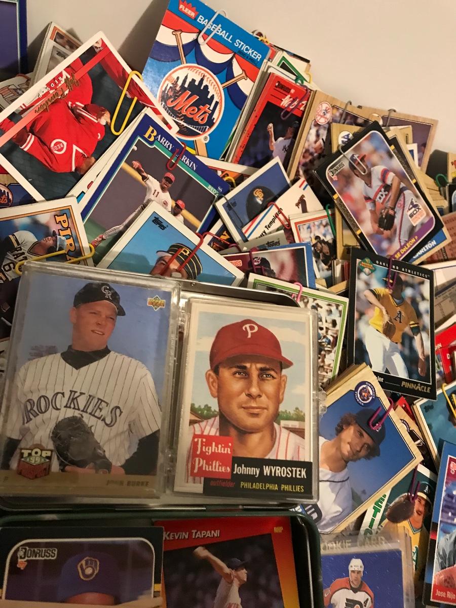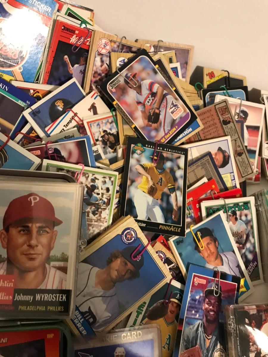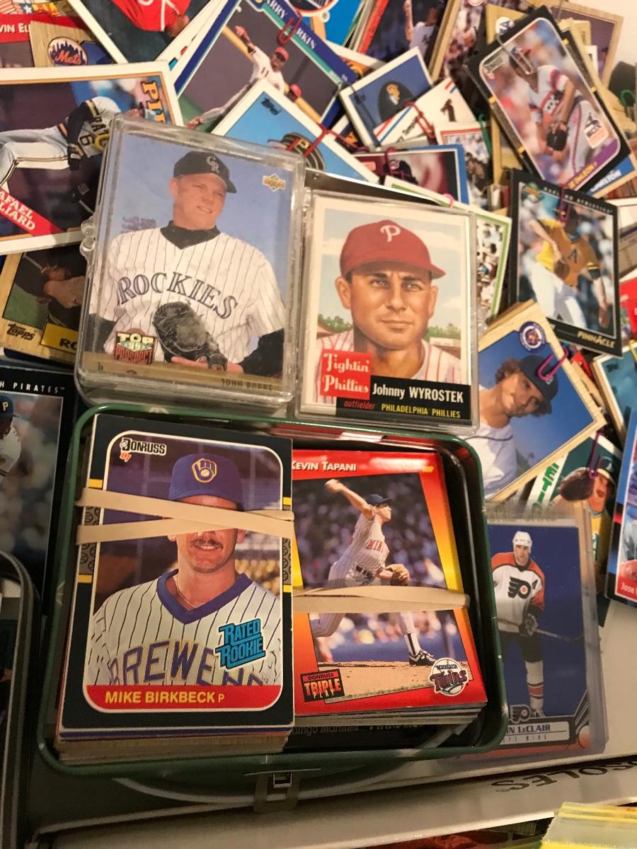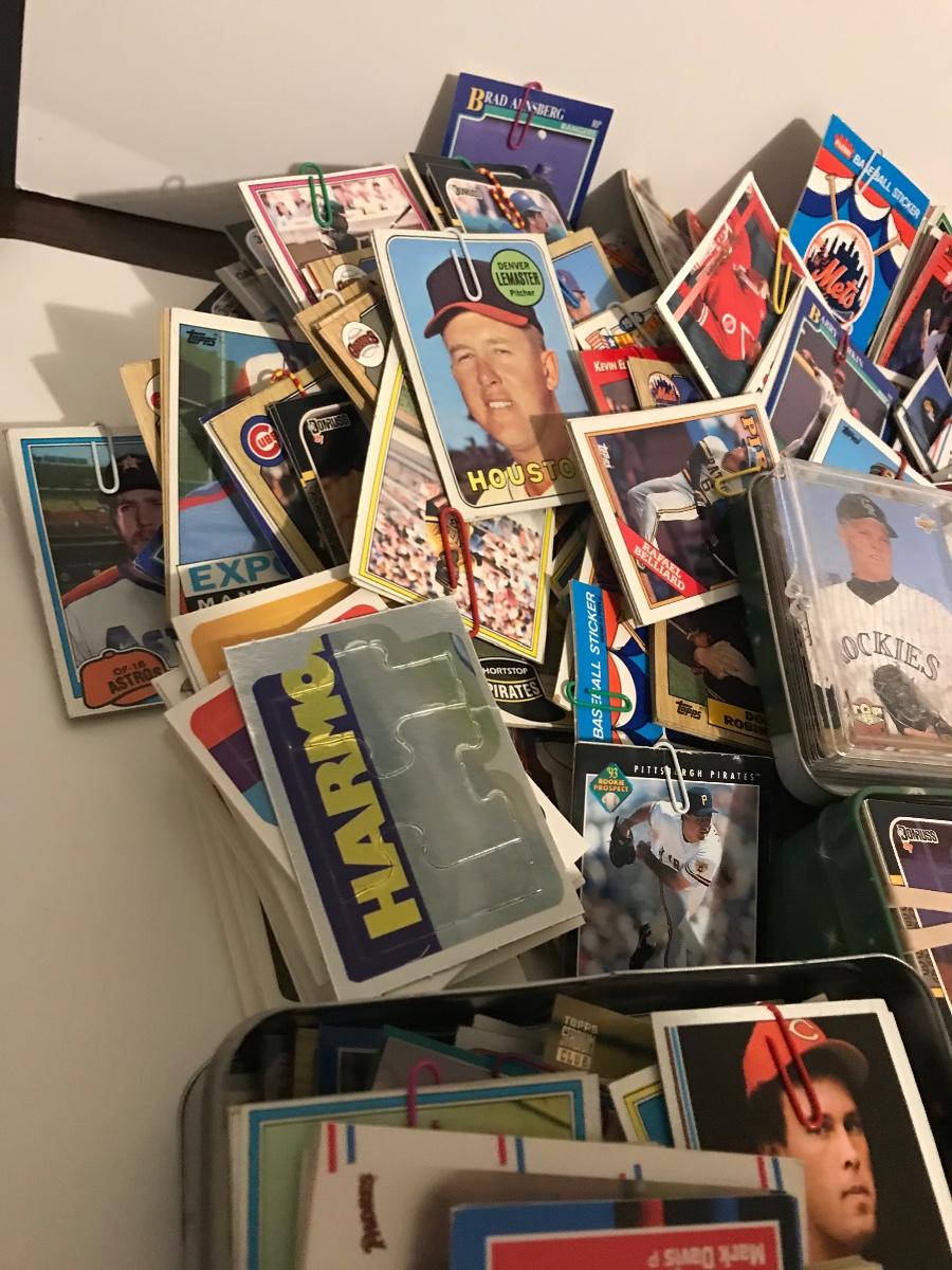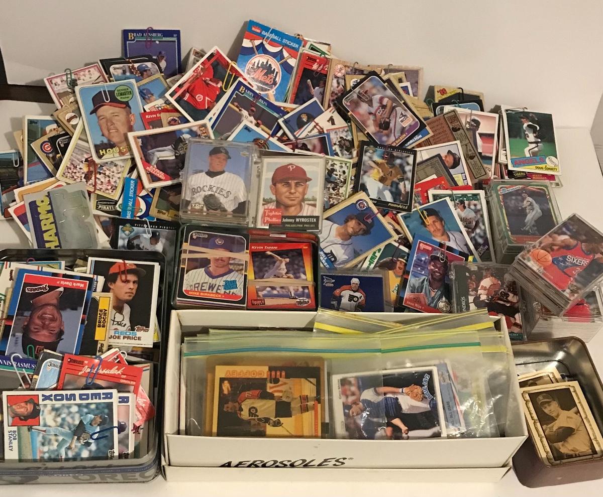 Sports Card Collection- Baseball, Basketball, Football & Hockey. Mostly from the 80s and 90s. Cards are in varying conditions with many held together in bundles with rubber bands and paper clips. Please see all pictures as they are the best representation of the items. The pictures show condition, measurements if taken, and what is included in the lot. Due to the large amount that we photograph and the time frame, we are not always able to take measurements. All items unless noted, are pre-owned and have been used. If you purchased furniture, you must bring help. We do not allow one person to carry large furniture out on their own. Bring help, tools and a truck for the safety of our client’s homes, and your personal safety. Company policy. Thank you.
