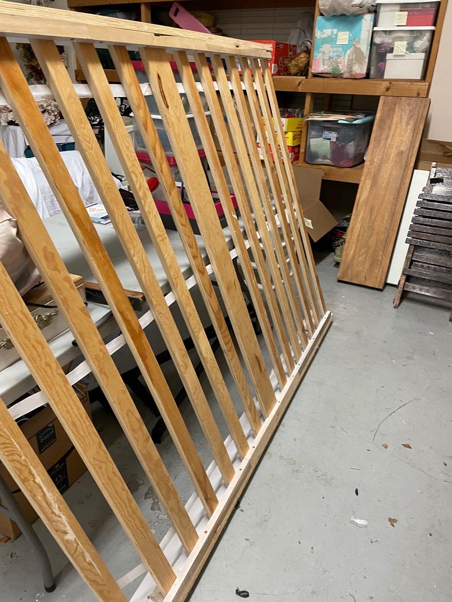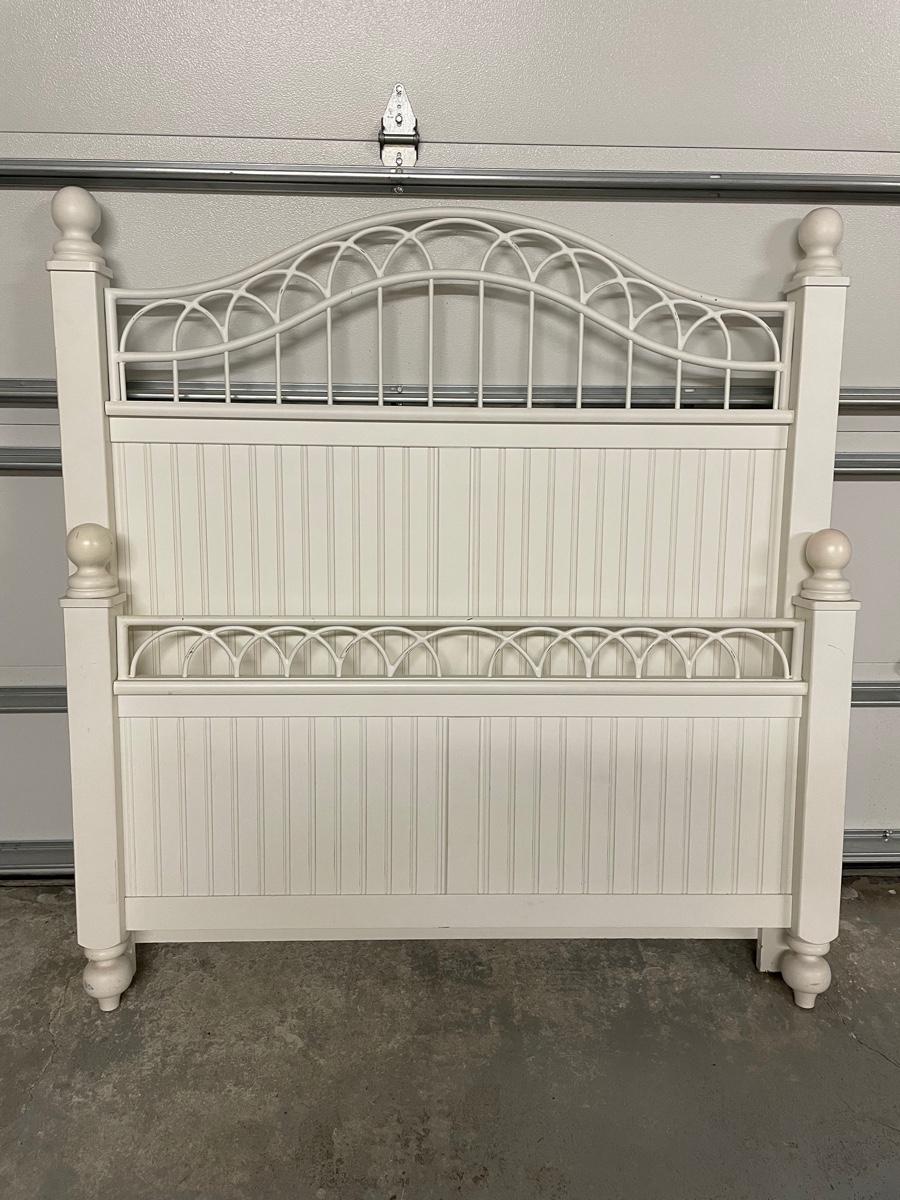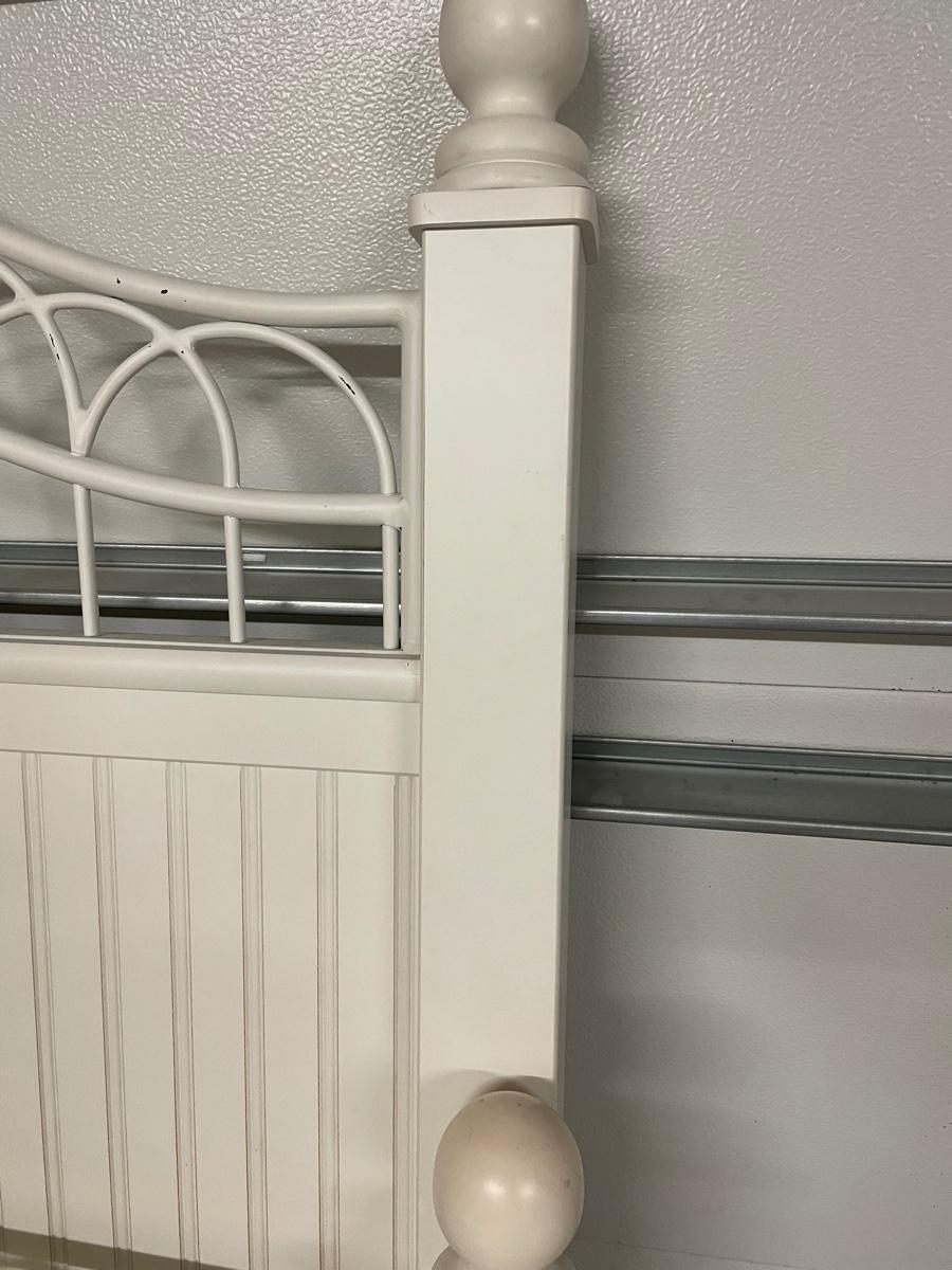 Off -white cottage style adorable bed frame. Minor blemishes.