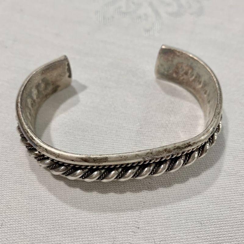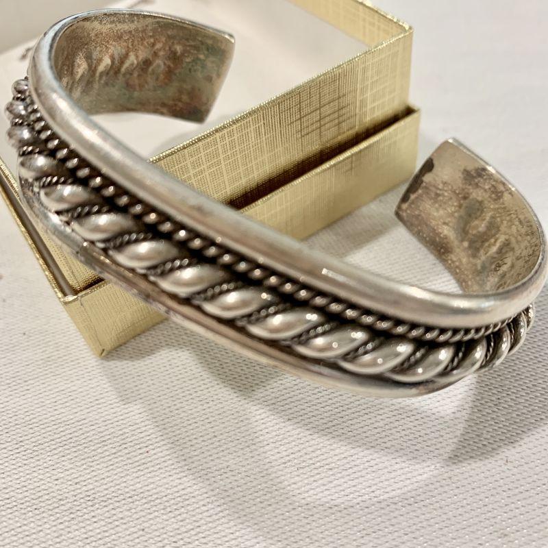 Thick sterling silver clamp bracelet with twisted center detail 2 3/4" across inside.