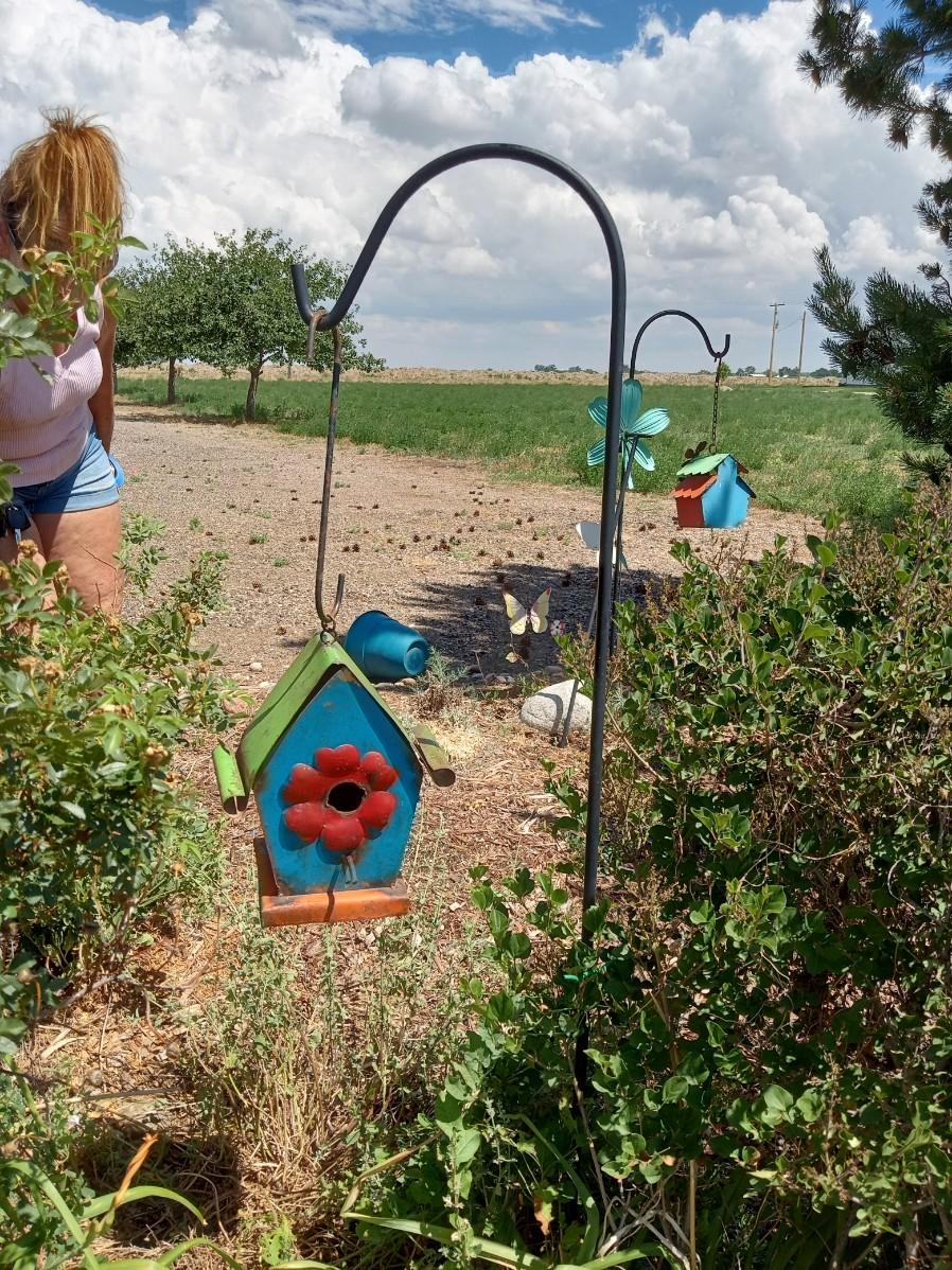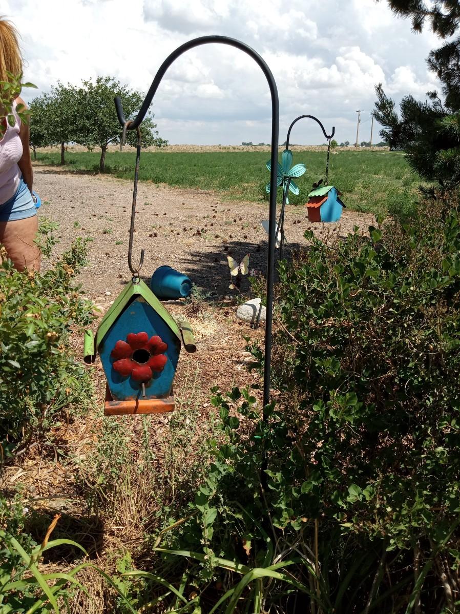 LOT 318 TWO LARGER FLOWER POTS AND A METAL BIRDHOUSE ON HOOK (OB)