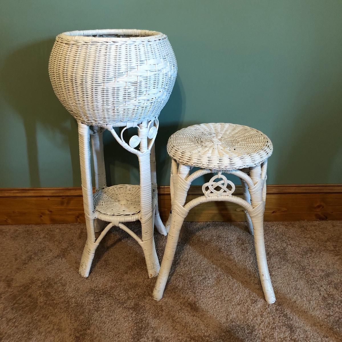 Lot 318 - Wicker Table & Plant Stands