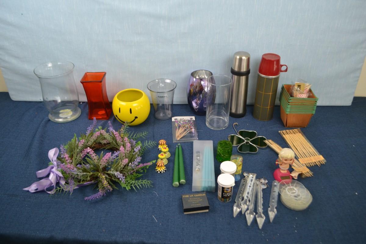LOT 319 HOME DECOR AND TWO THERMOS