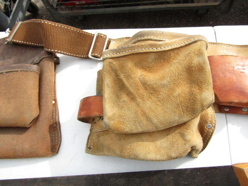 HAND SAWS, PLUMB BOB, TAPE MEASURES, AND A FEW NICE LEATHER TOOL BELTS.